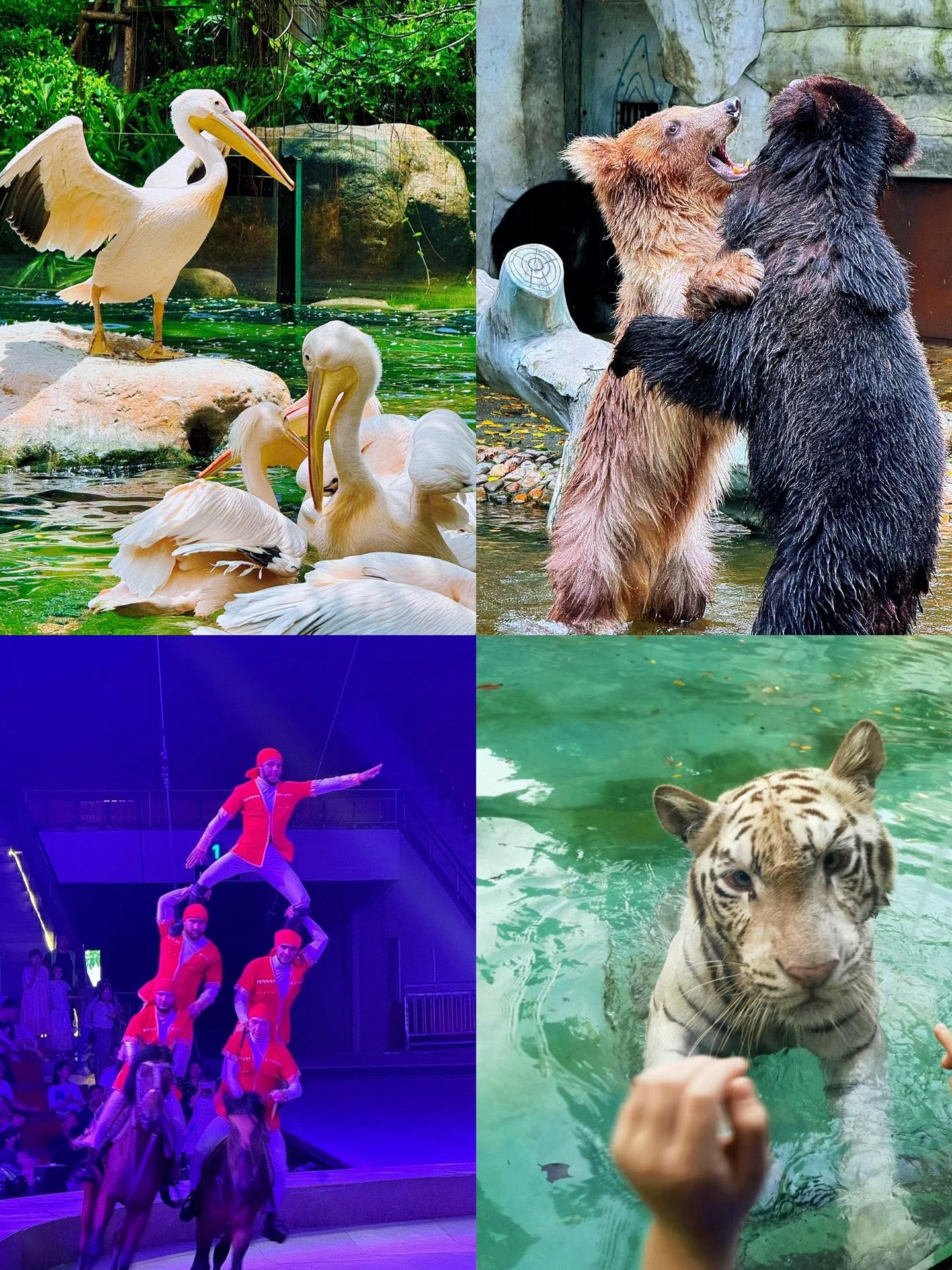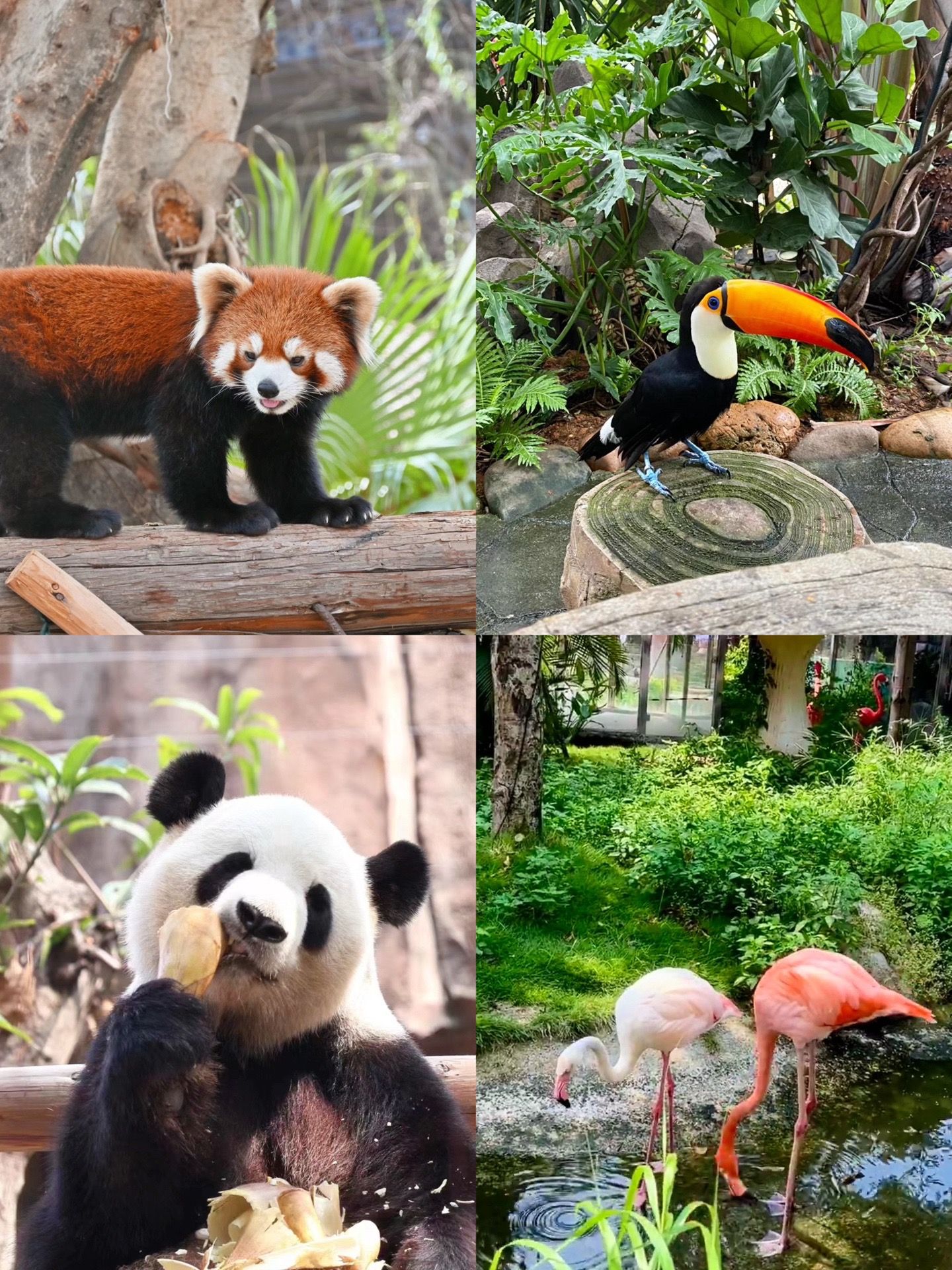 游玩线路推荐:孔雀舞台-火烈鸟岛-河马馆-海狮馆-水獭馆-巨嘴鸟-小熊猫-棕熊山-袋鼠园-长颈鹿-斑马馆-熊猫馆-马术体验营-神兽乐园-节尾狐馆-白虎园-鹦鹉馆-灵猴部落