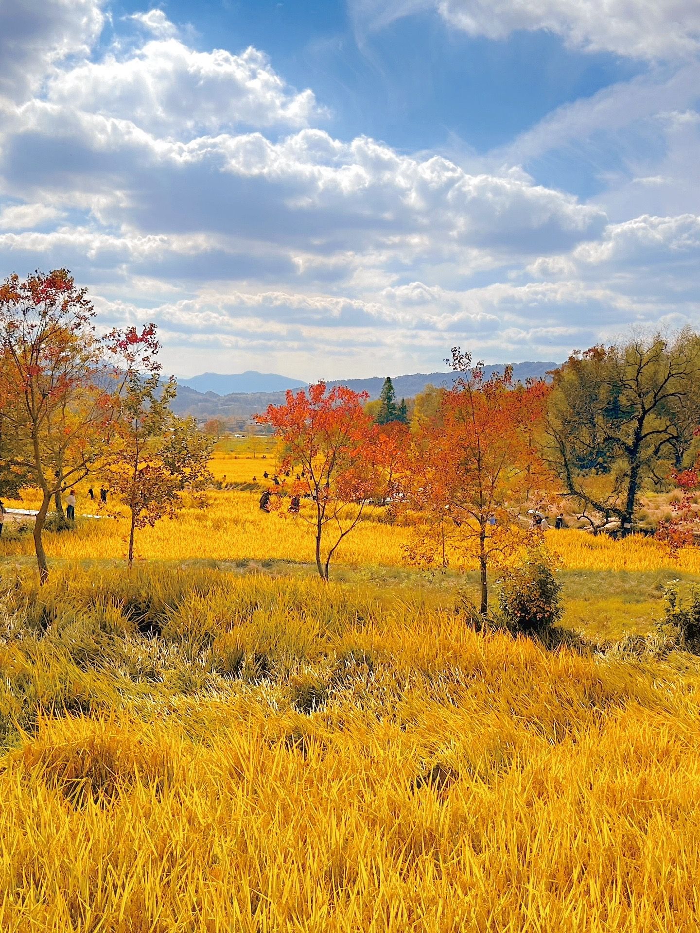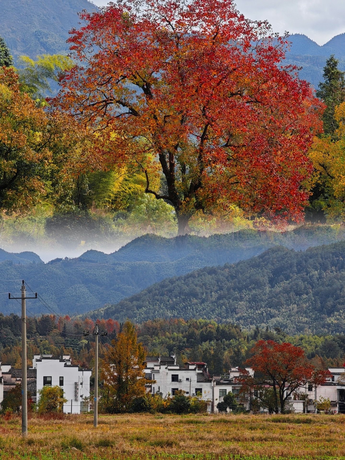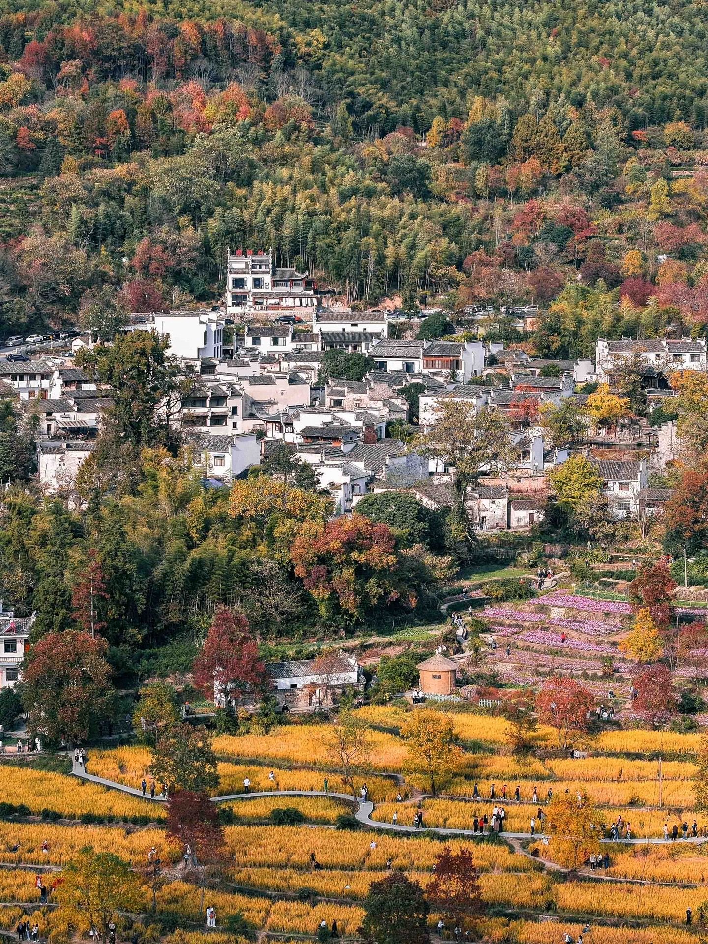 最佳赏秋时间:10月底-11月初,水稻金黄,枫香、乌桕开始由黄变红,每一天都是不同的景色
