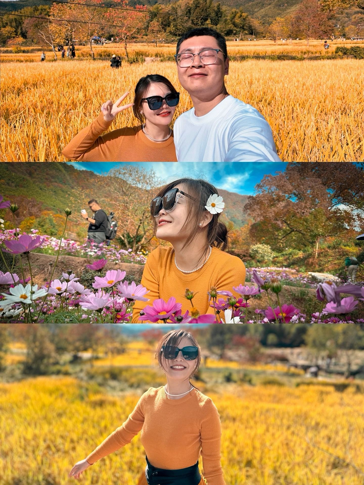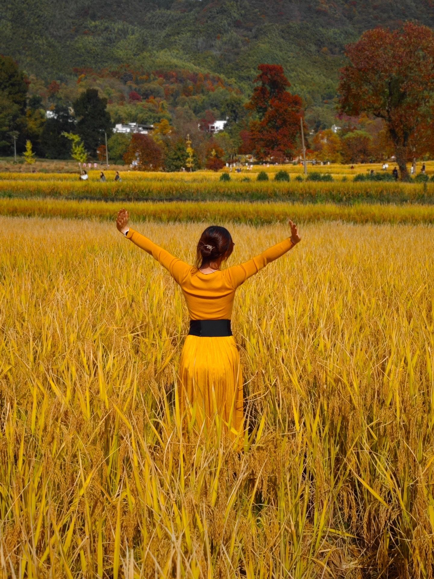 当地大哥说我们来的时间刚刚好,这个周末之前来树叶还没变红,这个周末之后来,水稻就要收割了