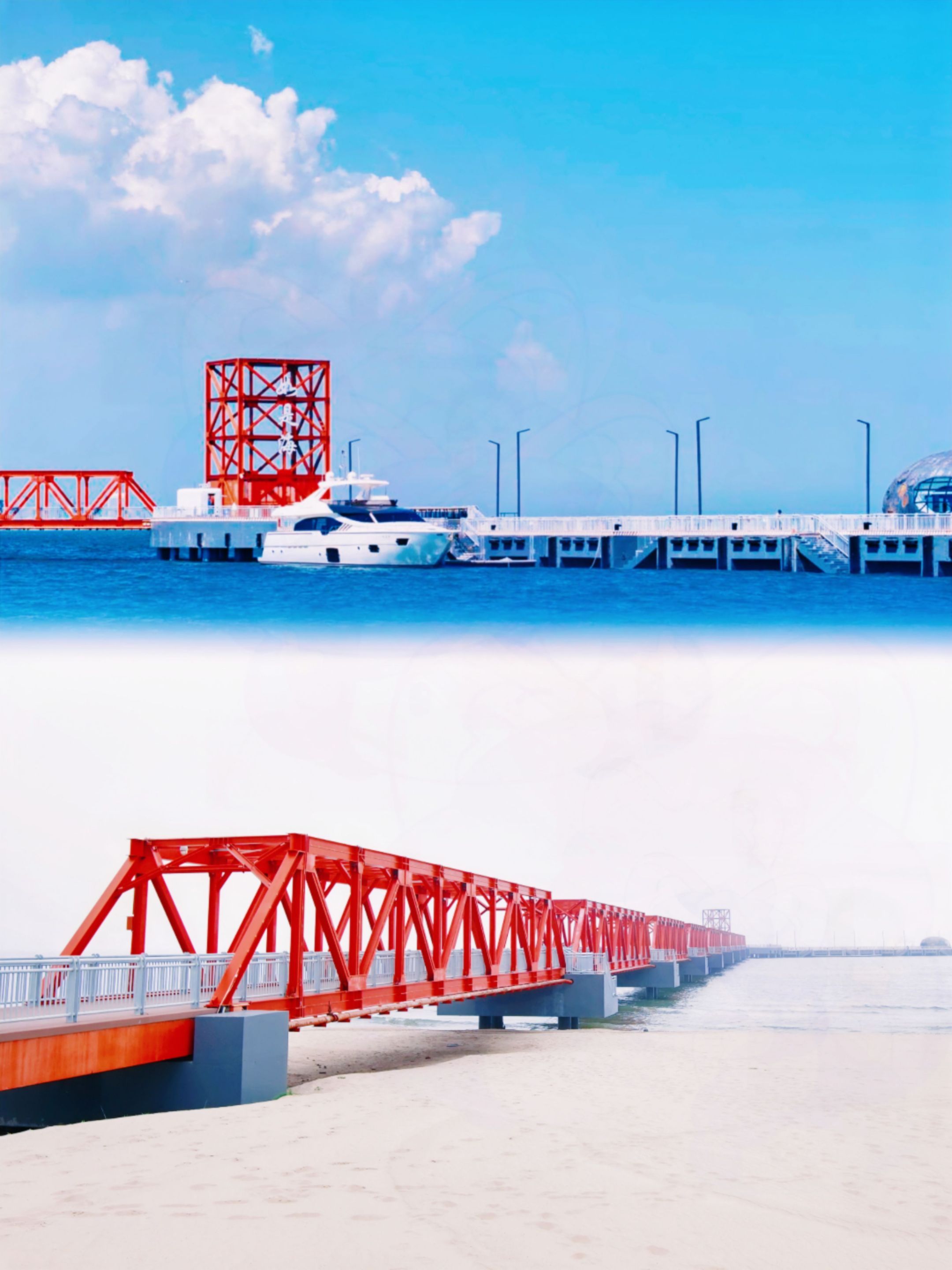 海边红桥:这里可以拍摄到日出美景,夜晚的景色也很漂亮,记得带上相机或者手机记录下这一刻。