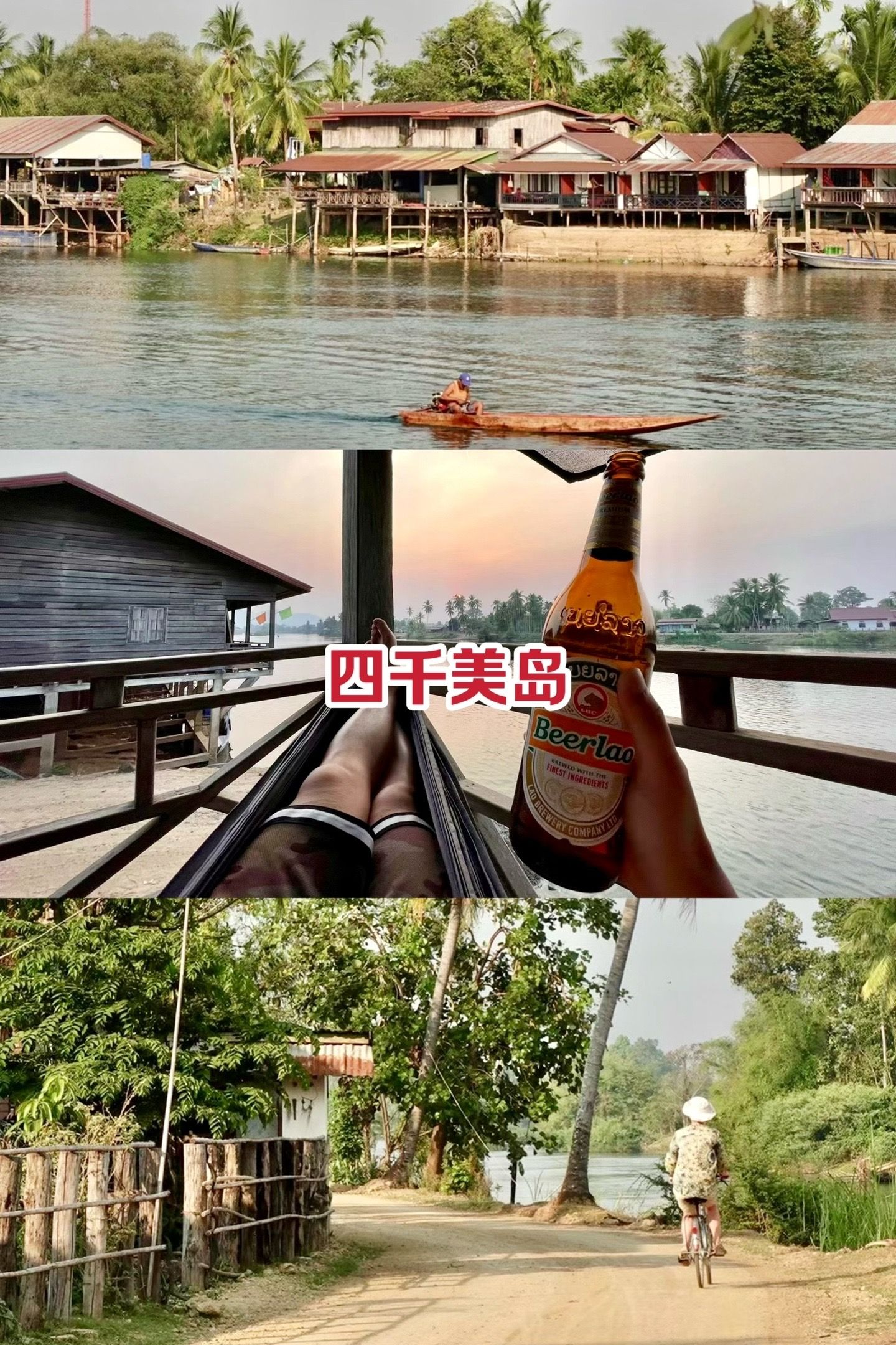 4.四千美岛:远离老挝核心旅游区,但我极力推荐,位于老挝最南部,与柬埔寨毗邻,从万象坐巴士要十几个小时,如果不想折腾可以坐飞机去巴色,然后转车前往。四千美岛是湄公河上的数座小岛的总称,但是主要玩东德岛和东阔岛,坐船上岛后,40多块就可以住进湄公河景小木屋,每天就是骑着自行车在岛上闲逛,徒步瀑布和看日落很惬意。
