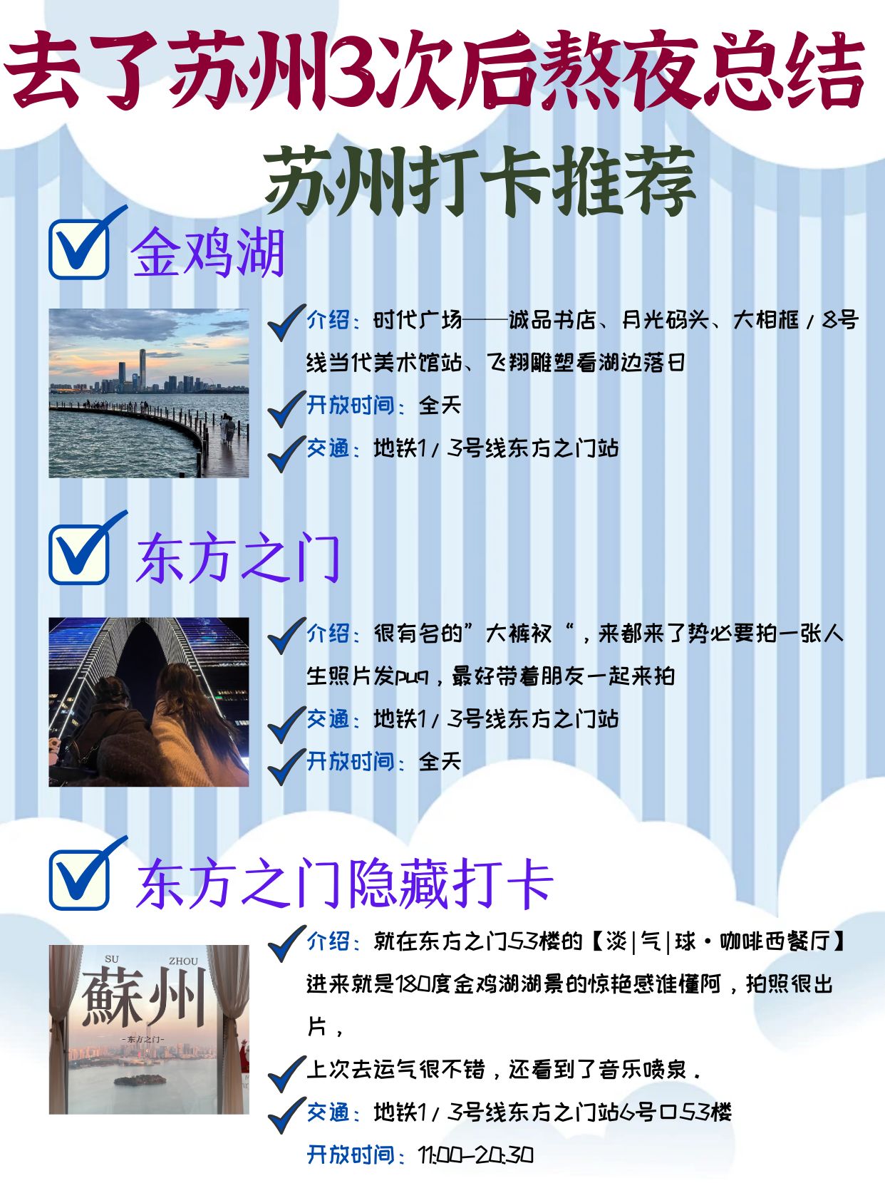 小伙伴们,想去苏州玩的看这里!苏州本地人熬夜整理的游玩秘籍来啦!趁着人少景美,说走就走吧!记得收藏哦,下次找起来更方便!
