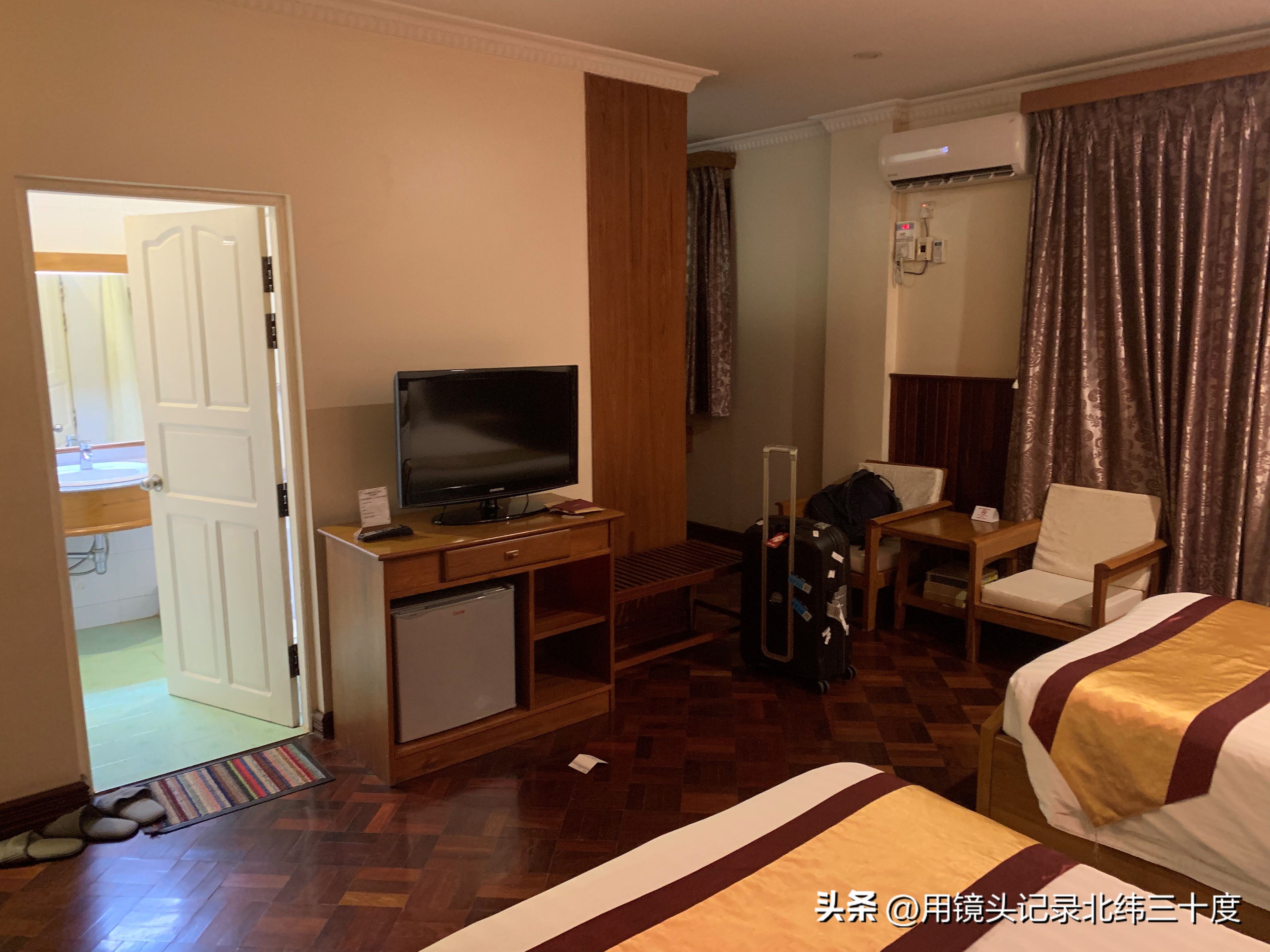 房间比较大,也有一些当地有特色的软装,令人印象最深刻的一个提线木偶,这其实是缅甸的一个传统文艺形式,也被用作伴手礼。底下放着损坏酒店物品需要赔偿的价目表。后来听团友说很多时候他们会把这个木偶翻过去,晚上有个人像盯着看,有点慎得慌。(我们总共在这个酒店住三晚,分别是入住日,第一天和第七天晚上。)整个酒店的wifi不太好,比通讯商的还差,基本只能看看文字,视频下载都不给力,整个全程的酒店都有这个问题,感觉缅甸的通讯与国内相比还差十年左右。