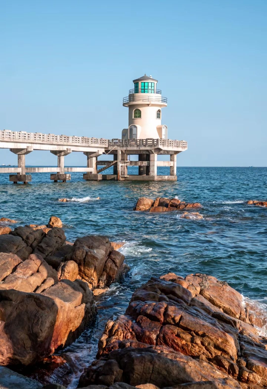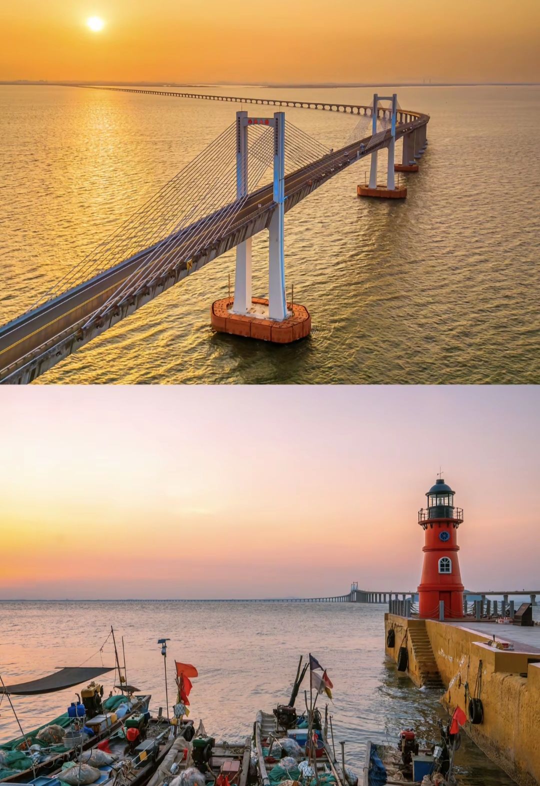 ·长山尾灯塔:红色灯塔与南澳大桥同框的