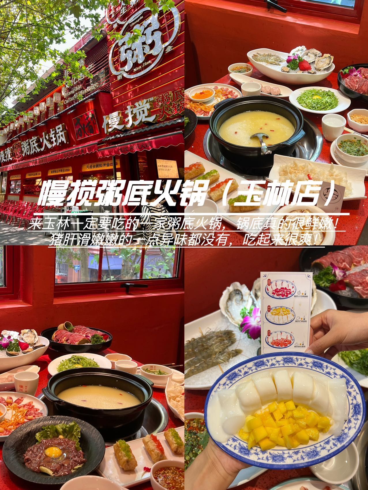 慢搅粥底火锅(玉林店):来玉林一定要吃的一家粥底火锅,锅底真的很鲜嫩!猪肝滑嫩嫩的一点异味都没有,吃起来很爽!