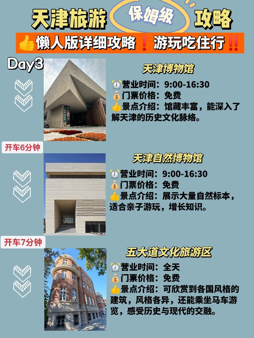 - 天津博物馆(9:00 - 16:30,周一闭馆,免费),馆藏丰富,能深入了解天津的历史文化脉络。