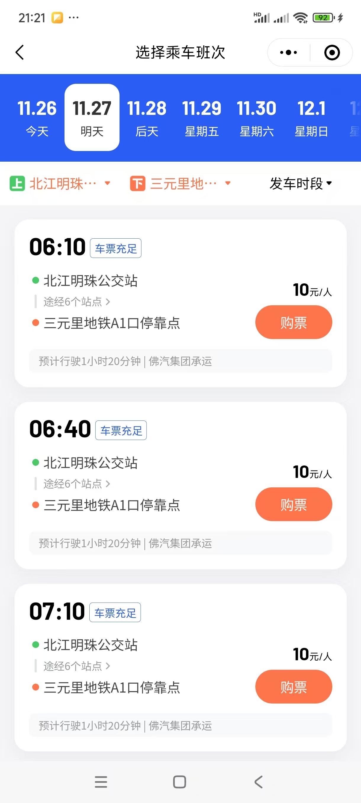 这家是最早走这条线路的,票价是20元,走天河体育西路经过三元里地铁站,在三元里上高速后,直达三水北江新区。