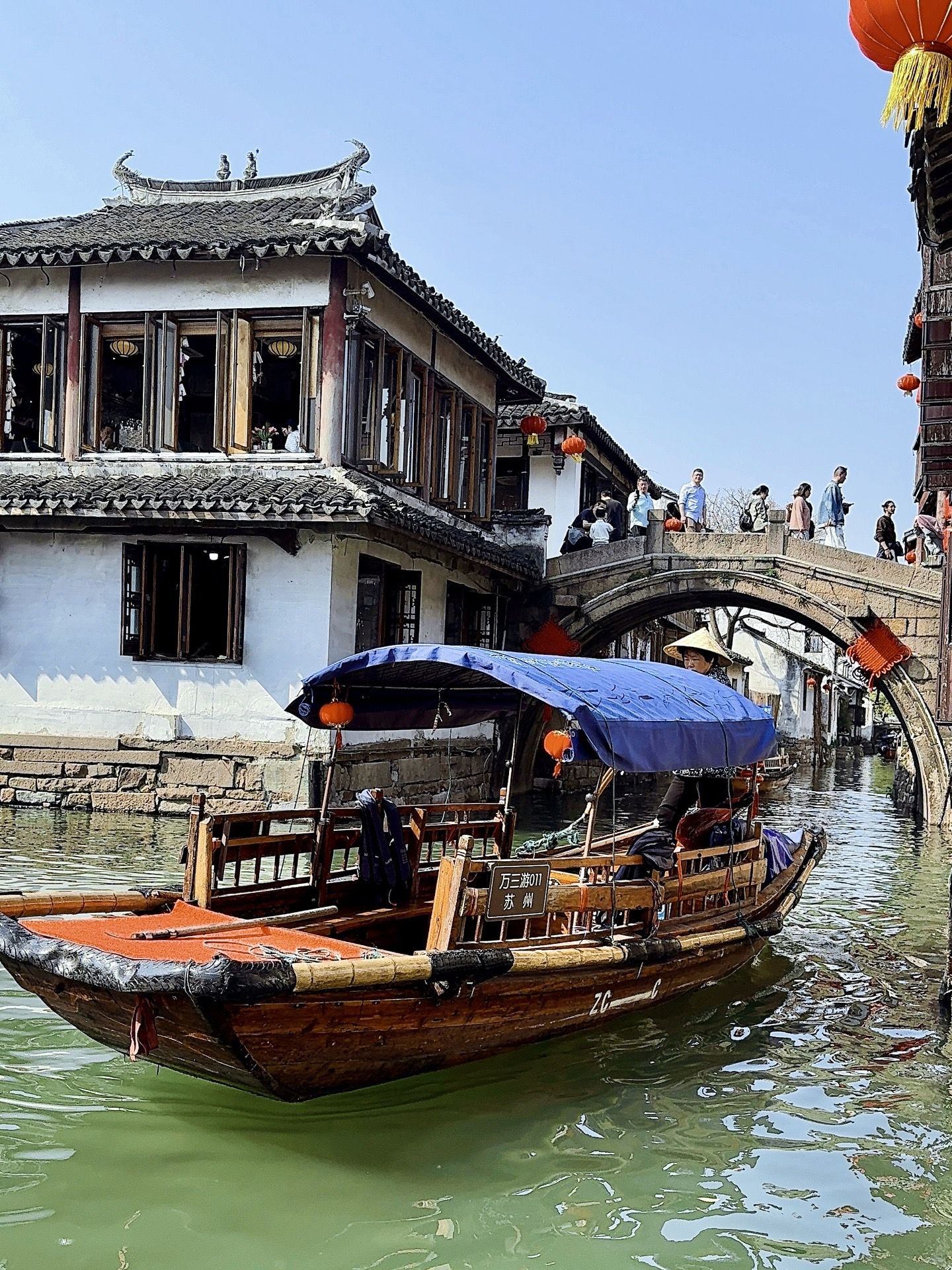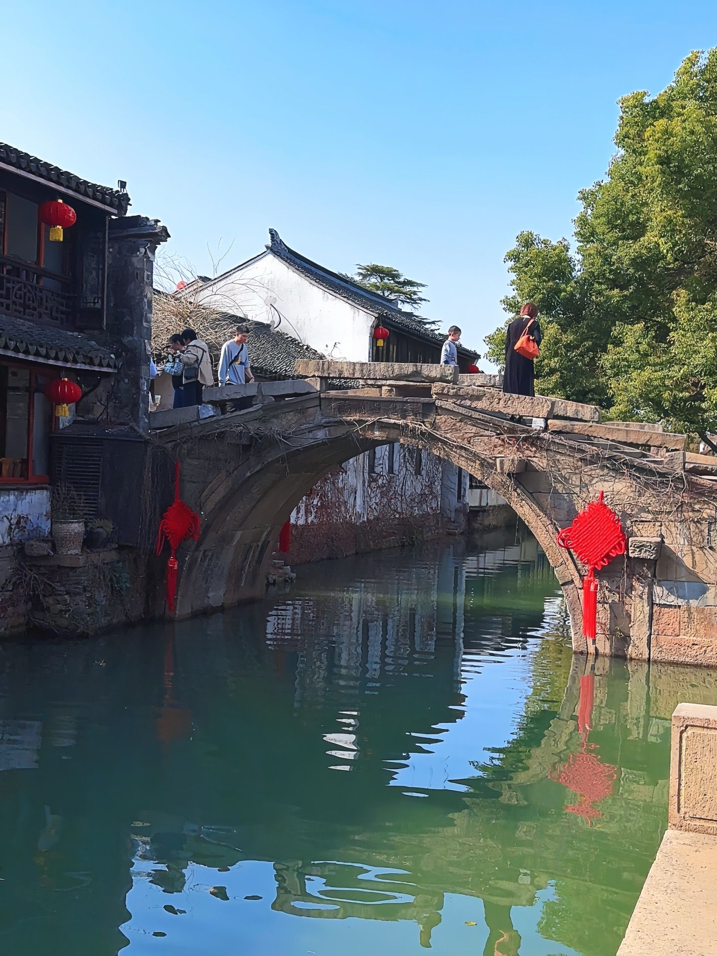 “钥匙桥”双桥是周庄的灵魂!白墙黛瓦+碧波倒影,随便一拍都是《清明上河图》既视感! 桥上还能偶遇摇橹船划过,船夫哼着小调,氛围感拉满!