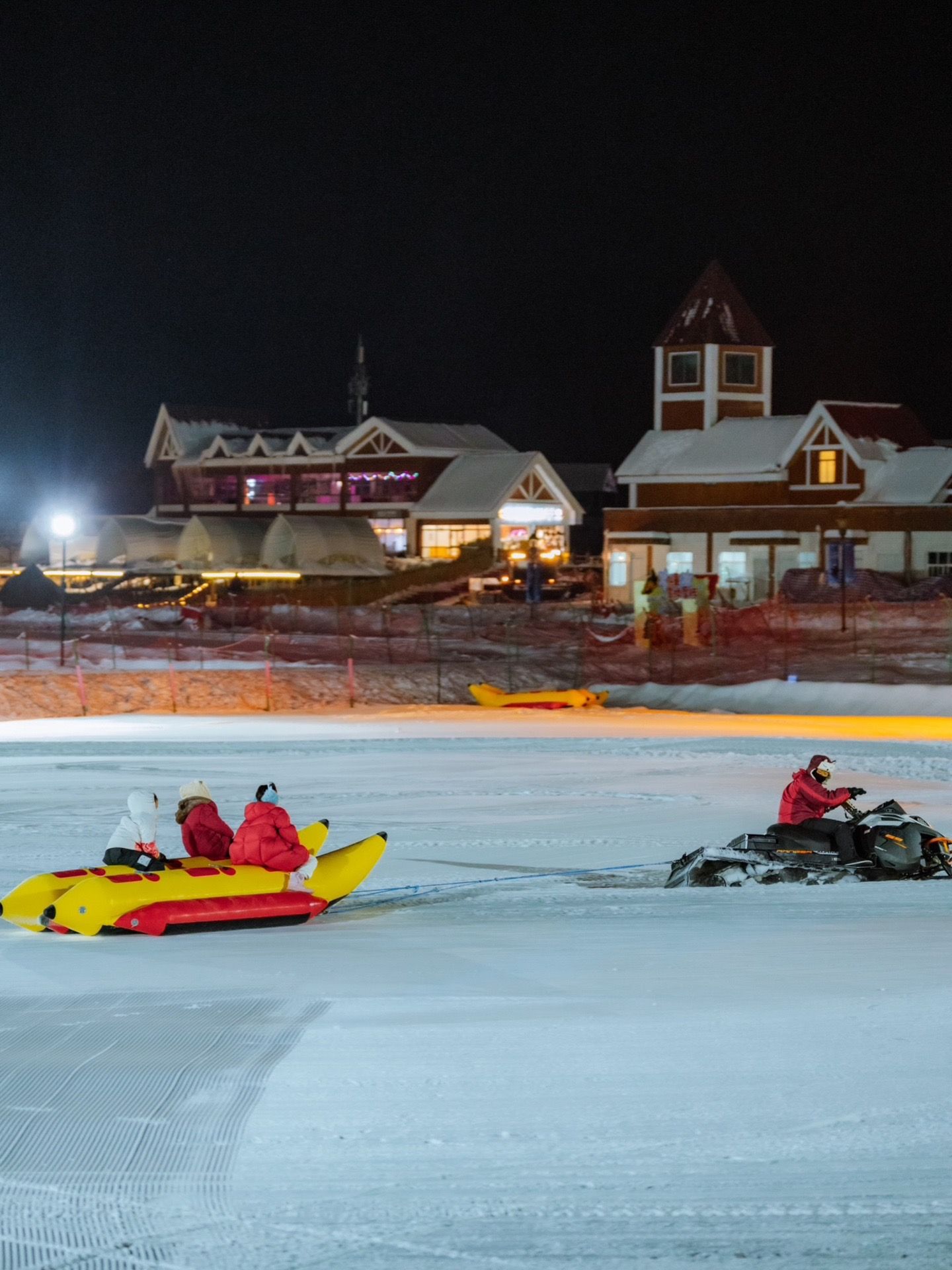 晚上再来耍娱乐项目,除了滑雪人多点(相对白天少了很多),其他都不用排队就玩了滑雪19点夜场开始,其他项目日场夜场不间断。