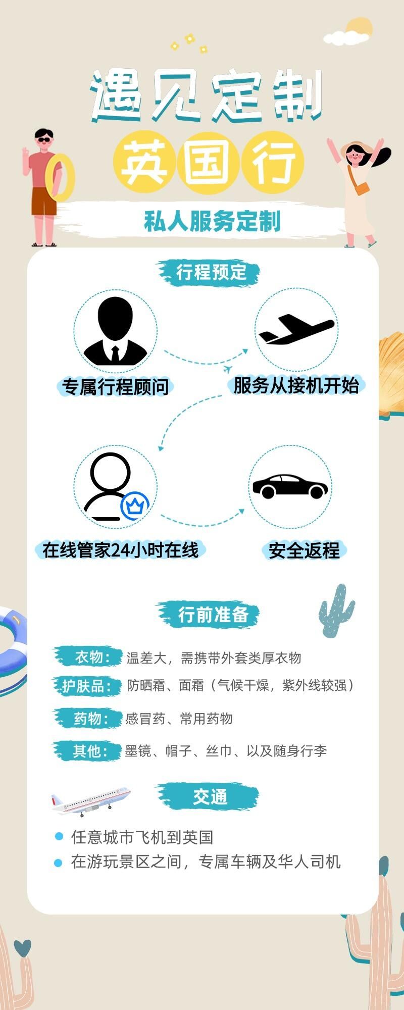 双语导游服务:顾客到达旅行目的地后,将由英华双语导游和经过认证的司机为其提供服务,帮助顾客更好地理解当地文化与历史。在英国境内使用7-9座奔驰商务车,享受豪华配置。