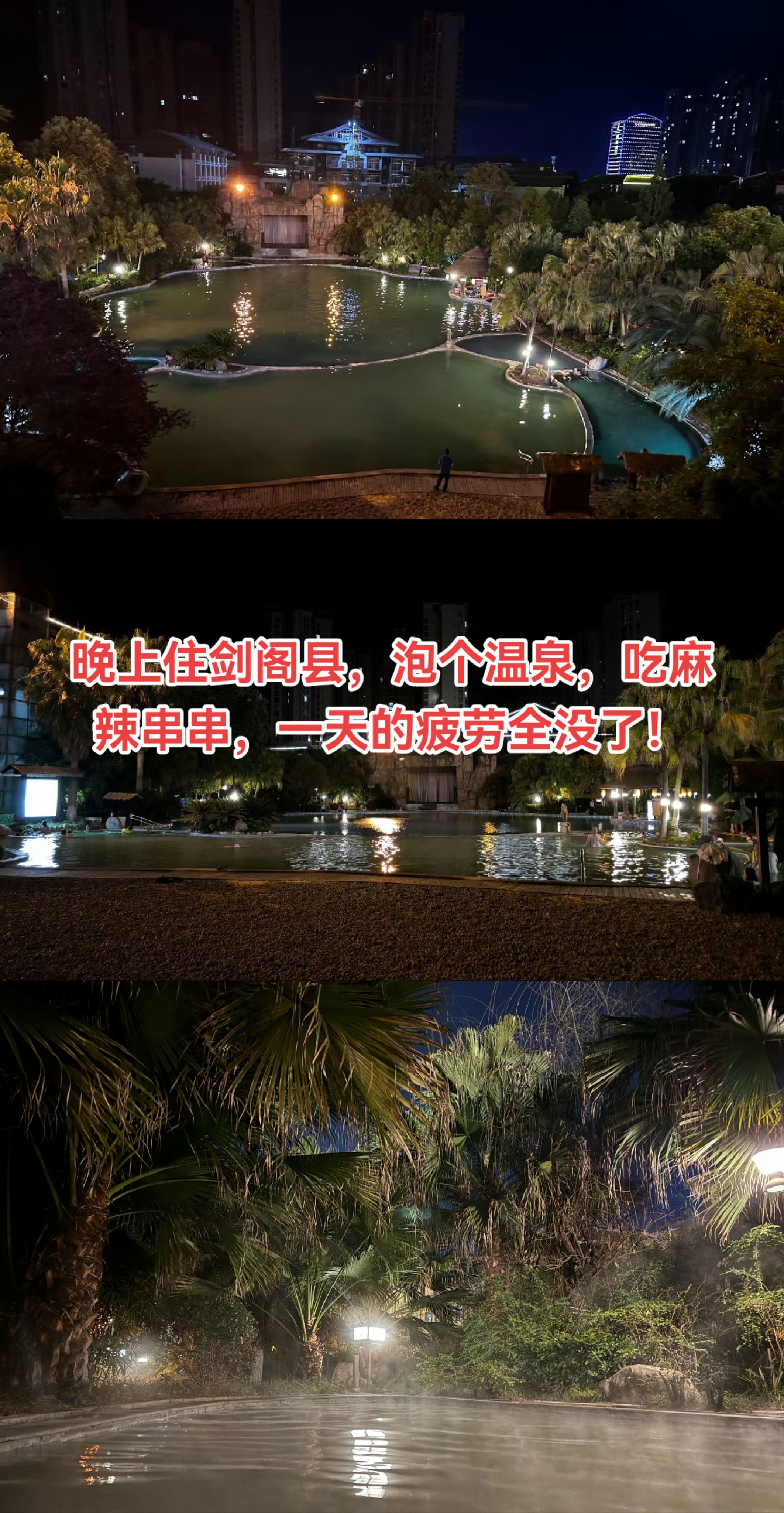 • 晚上:夜宿剑阁县,泡蜀道温泉解乏,吃剑阁麻辣串、火烧馍配腊肉,简直太满足了!