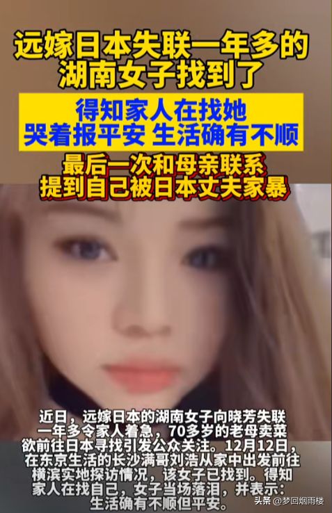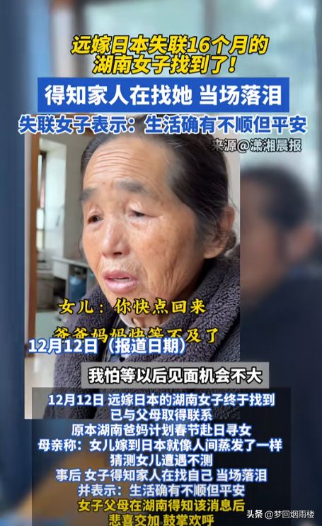 远嫁日本失联16个月的湖南女子联系上了!皮包骨头无法站立,手机卡被丈夫收走