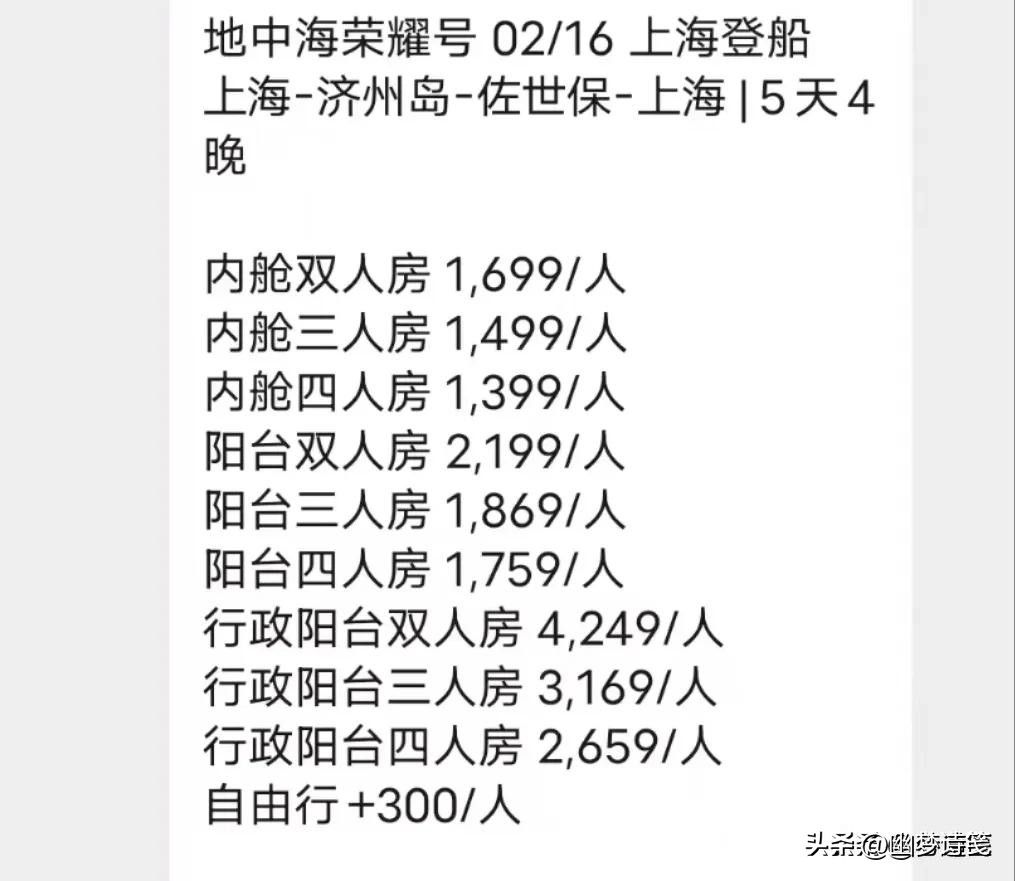 有人说,为什么邮轮都是从上海出发?因为上海的客人客源是最有保障的!还有人说,为什么去日韩?因为四五天时间,五六天时间只能到达这些港口。还有人说尾单有什么不一样吗?没什么不一样,就是有的房间没卖掉,所以他就赶快卖。#出海改变生活##邮轮##上海头条##游轮##旅游#上船之后,如果说你不想另外消费也是可以的,但是服务费每天是要付的。这个服务费等于就是给服务员的工资。#上海旅游排队##来沪旅游必打卡##邮轮打卡了##上海出境游##分享地中海邮轮#