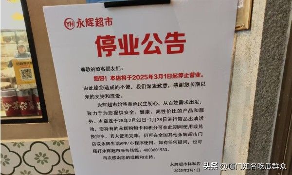 永辉一个月内在厦门关闭了2家门店,前几天关闭了思东店,马上要关闭的是祥和店