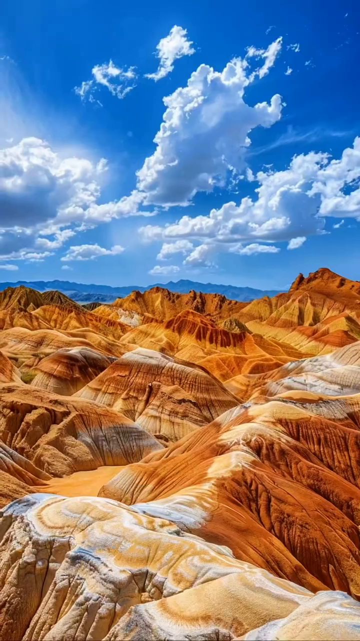 ·八、张掖七彩丹霞。群峰与沟壑呈现出红、黄、橙等多种艳丽的色彩,仿佛被大自然精心上色,在阳光的照耀下色彩愈发鲜艳夺目,令人称奇。