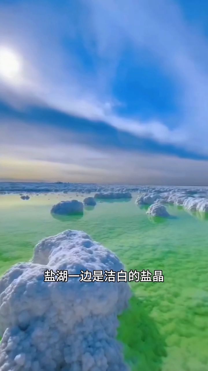 ·二、察尔汗盐湖。它是中国最大的盐湖,也是世界第二大盐湖。盐湖一边是洁白的盐晶,一边是苹果绿的湖水,色彩对比强烈,宛如上帝遗落在人间的绿宝石。