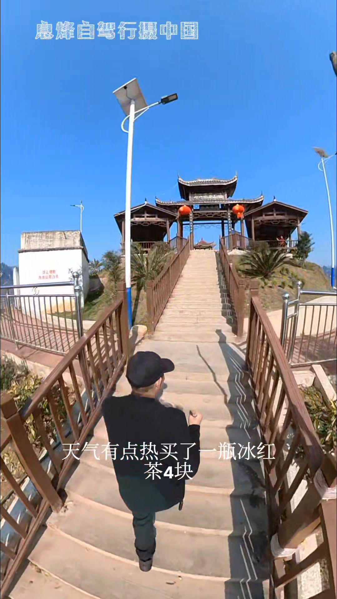 现在准备去观景台,那里应该是看风景的最佳点,团队几个女的还在拍照,一个人去看看。天气有点热,买了一瓶冰红茶4块,其实也不算贵,喝完水再爬梯子感觉轻松不少。这个小山头全部搞成了观景台,感觉还真是不错。