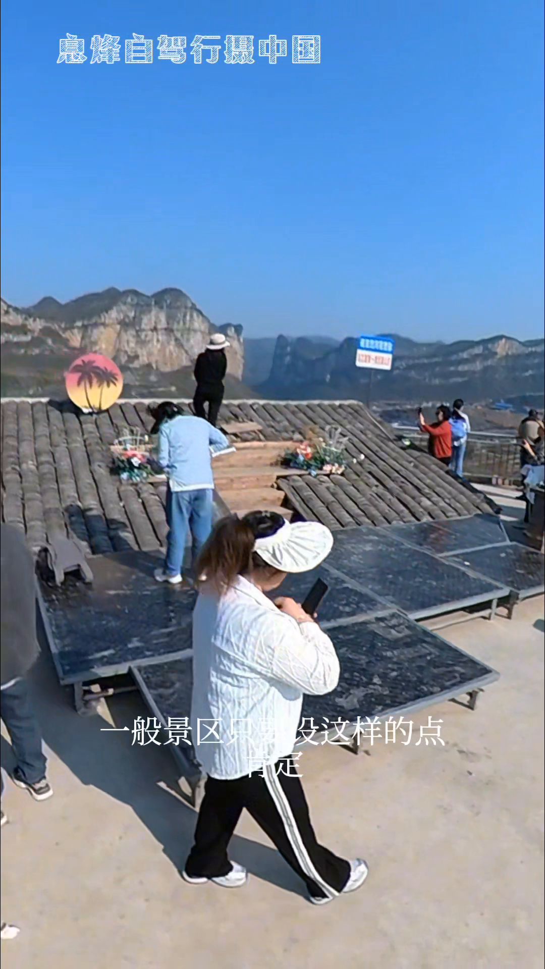 东南面的风景应该才是主要的,下面路上的车很堵,这上面还好,很轻松。观景台分两层,下面还有一层,我在的是最顶层,先来一个全景看看哪边最漂亮。这里有一个房屋顶的打卡点,我以为是要收费的,结果见人拍照根本没有管理人员,有点难以置信。