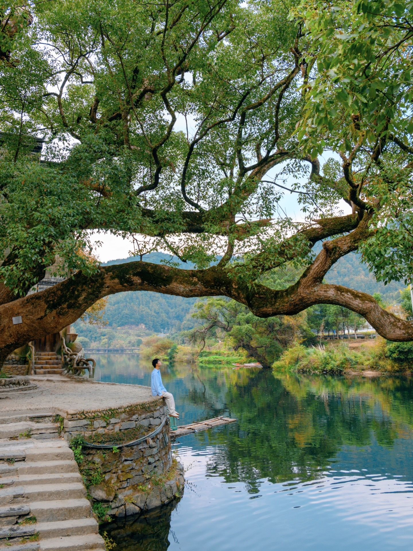 这里是电影《我不是潘金莲》取景地,村里这棵千年古樟树沿河而垂,美得和电影画面一样