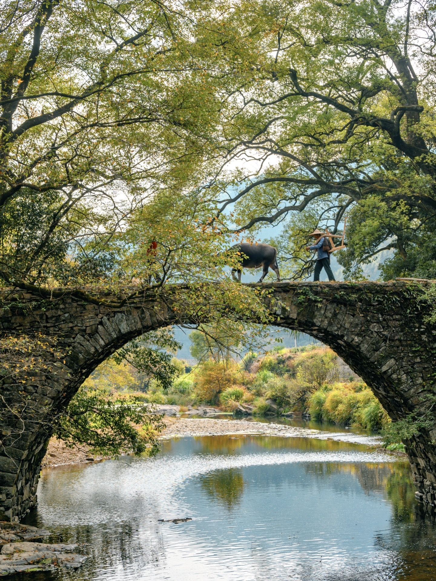 因为一座祭酒桥而出圈的察关村,可以花半个小时拍照闲逛,桥上一直会有老农牵牛走过