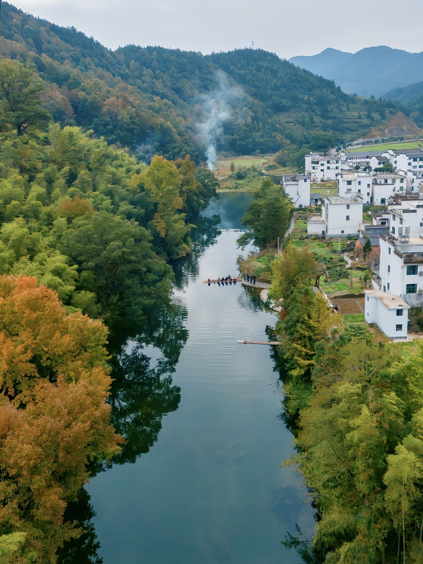 在婺源发现最惊喜的一个冷门古村,村子深处藏着一条绿野仙踪般的溪流,秋天红叶和竹林交织,绝美。