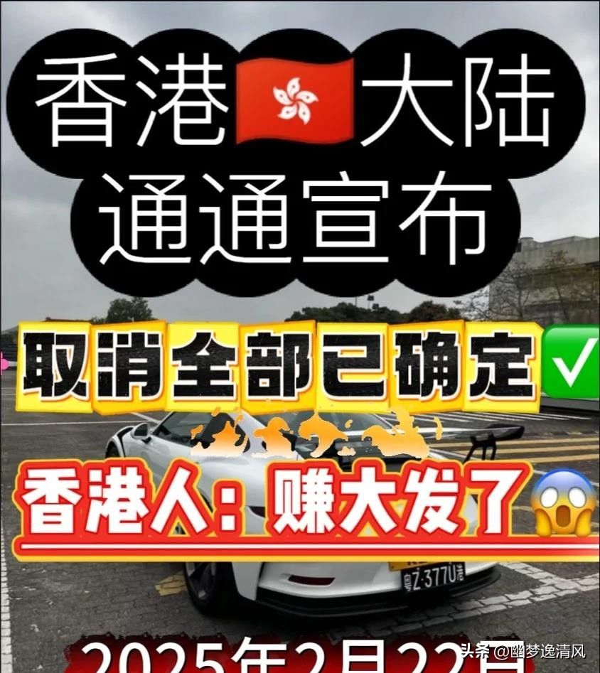 [流泪][流泪]真的假的?不敢相信,香港居然真的取消,香港只要车就能直接开去内地,不用再港车北上那么麻烦,因为港府刚刚宣布,两地牌的高门槛彻底取消!之前可是需要175万天价才能拥有[流泪],申请既要公司也需要满足巨额纳税,现在通通取消啦[震惊][震惊]