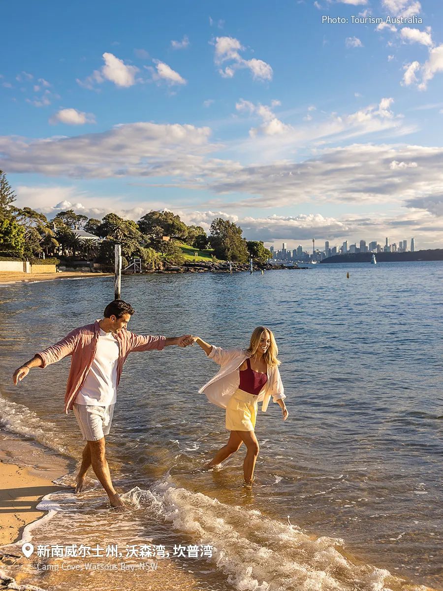 是悉尼海港畔的一片海滩,位于沃森湾(Watsons Bay)。这里宁静又私密,海边的小屋、夕阳时分的海鸥与落日,远方的天际线……一切都超级浪漫