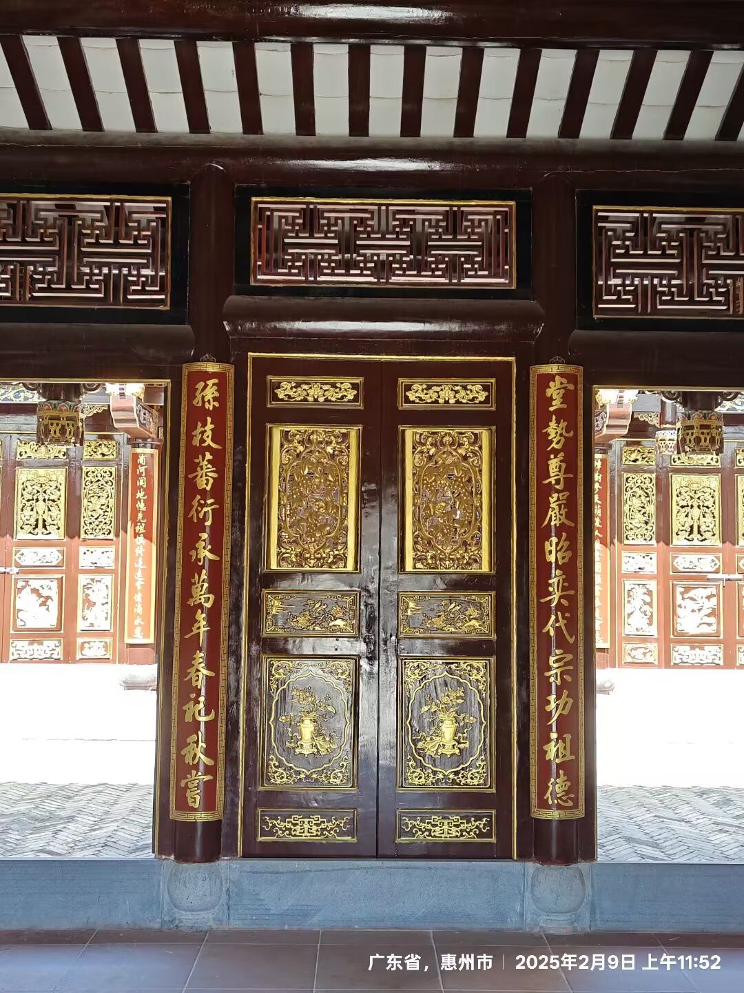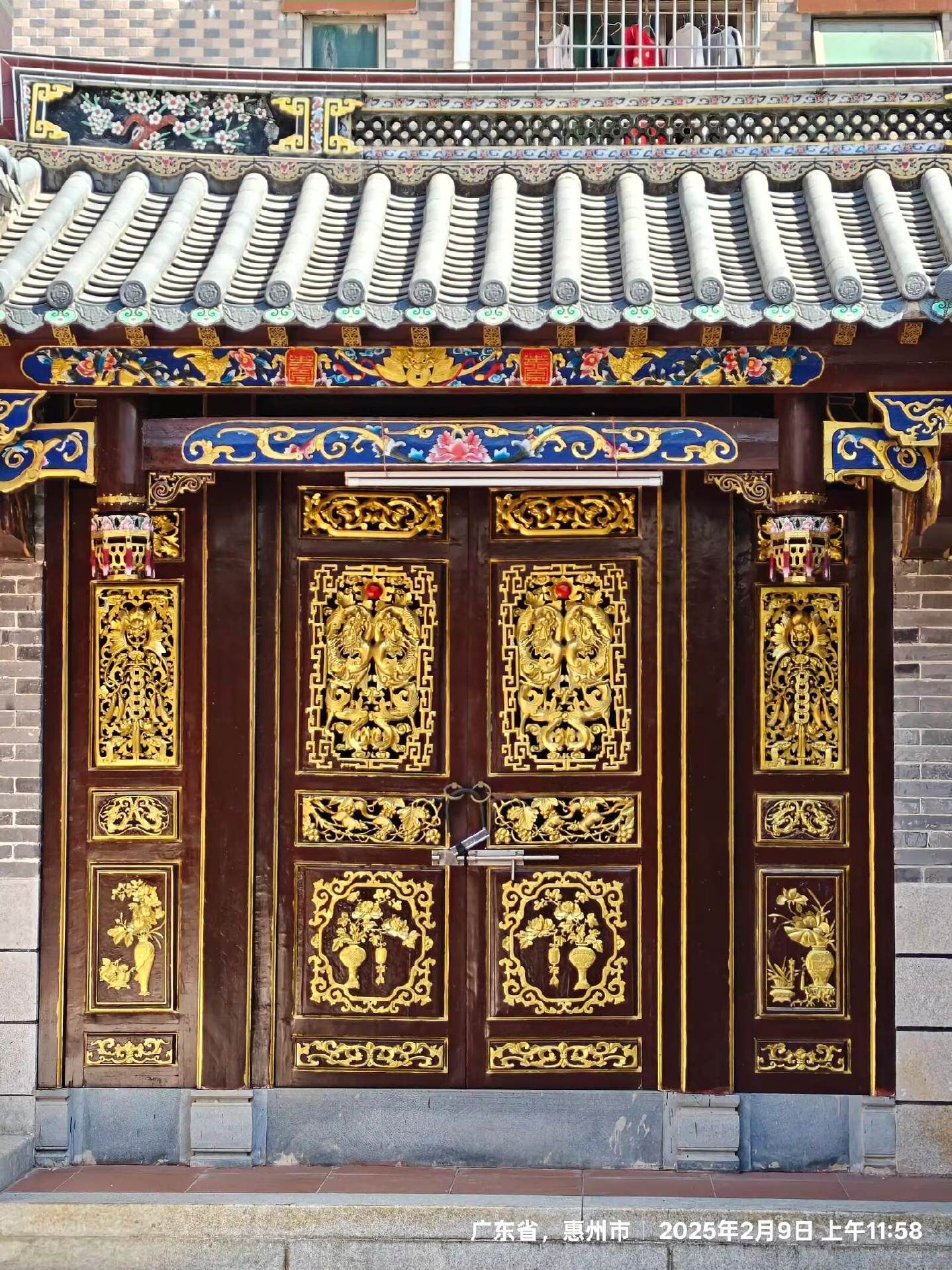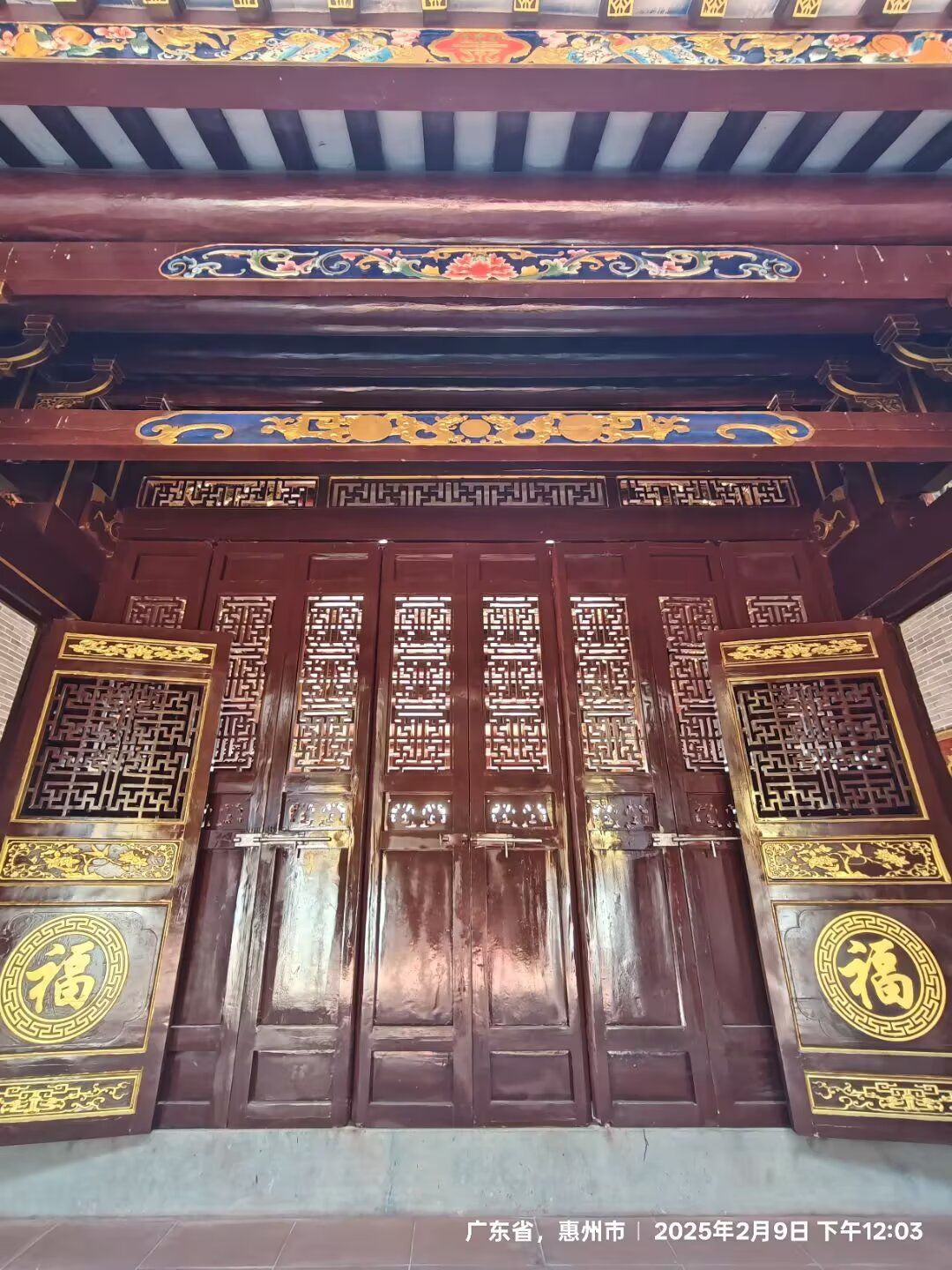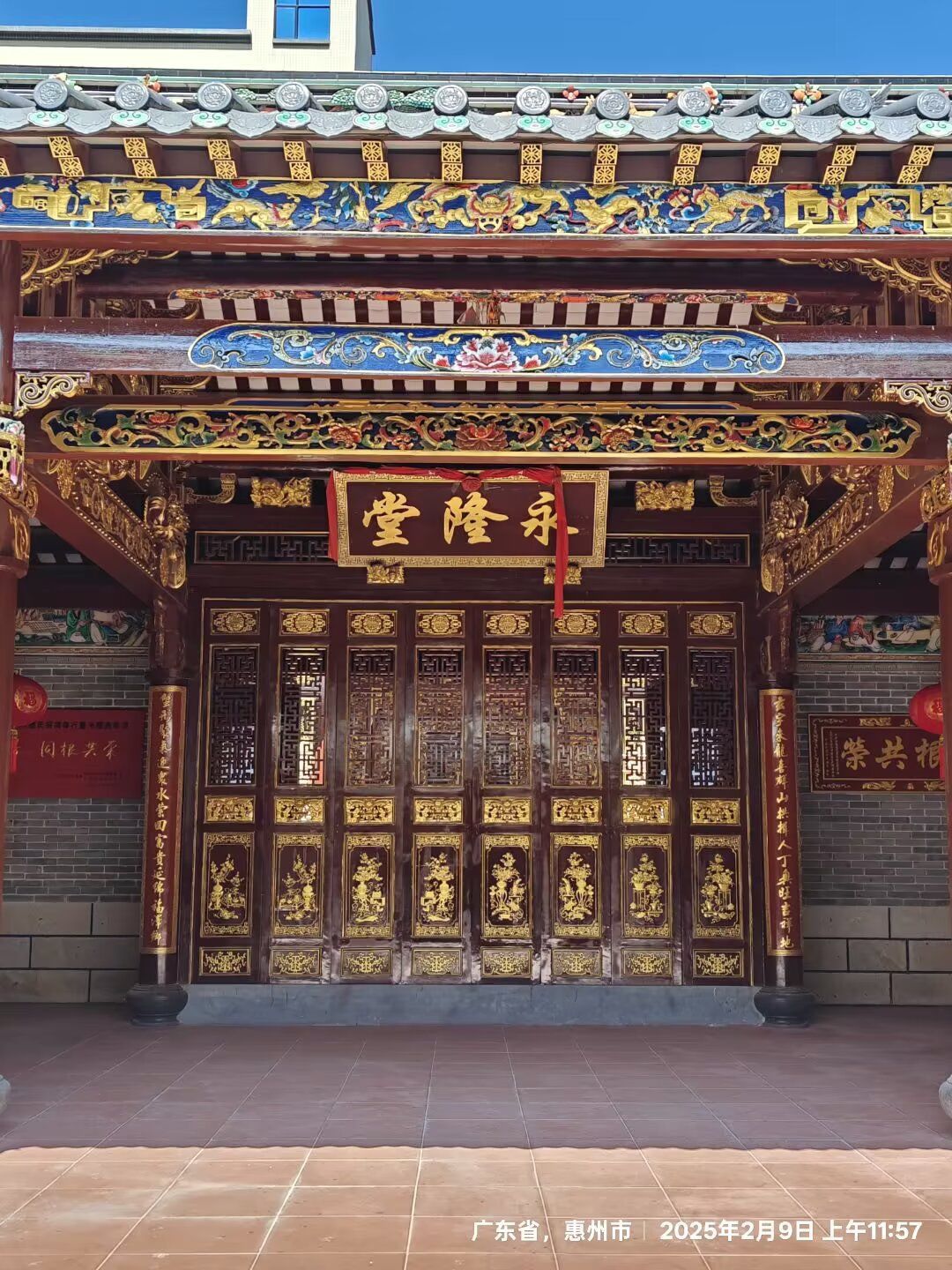 #惠州 #惠州大亚湾 2025年2月4日在寻访大元背望楼时曾到过该宗祠,以为是新建的并未引起重视,当时感觉富丽堂皇,精雕细琢,高档大气。回海景城后查阅资料知道了系27处不可移动文物之老围天水世居,2月9日为进一步考证,再次访寻。据相关史料记载,推算祖辈维翰公约在明朝中期定居于樟树浦村。历五世后,于清初期始建严氏祠堂。据老者相传,当时樟树浦共有严、陈、炎、孙、叶、包、吴七姓人居本村,自严氏祠堂建成后,其他各姓皆相继迁出,形成了惟严氏族人居住的村场。另据门楼牌匾记载,老围村原有三个门楼的围屋,建于乾隆四十年乙未岁。1983年由港澳宗亲自资进行过修缮,时光荏苒,风雨侵蚀,祠堂呈现倒塌之隐忧。