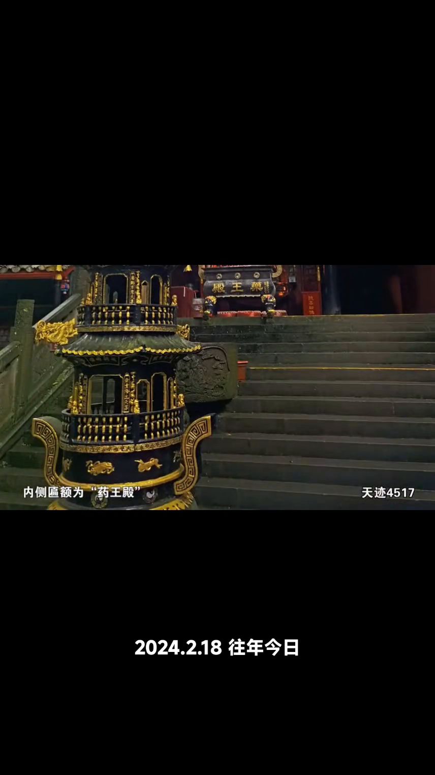 游览完全真观,沿着山间石阶小路便返回到主路了。又可见一个建筑群,进去一看,原来是药王殿。平台上有香炉,刻着"药王殿"。山门似的大木牌楼上,高悬匾额"坐虎针龙",内侧匾额为"药王殿。殿内塑有金装的龙虎和一位仙人,走近细看说明:供奉唐朝名医孙思邈真人。真人曾修道于青城山,后世尊为"药王"。