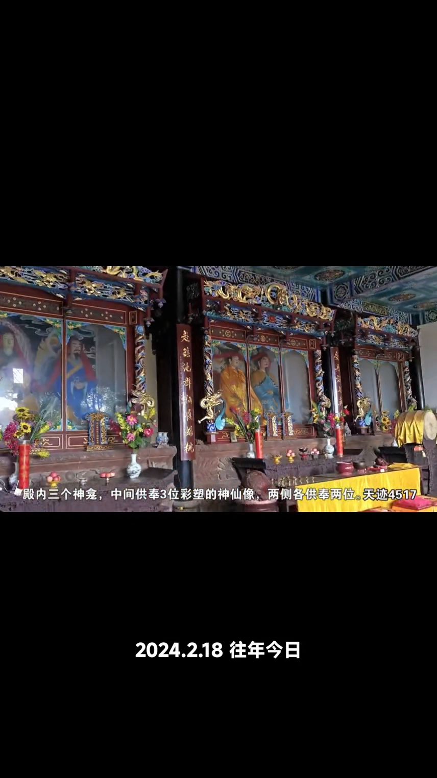 殿内三个神龛,中间供奉3位彩塑的神仙像,两侧各供奉两位。沿下匾额七真殿,"道貌巍哦"和"道载乾坤",堂内悬匾全贞观,"全真演教"和"无为至上"。慈航殿门楣上有金底殿匾红字刻写"慈航普渡",右边领祖甸甸的匾额是道光普渡,左殿匾额是广大灵感。里面供奉慈航真人,既佛教中的观音菩萨。