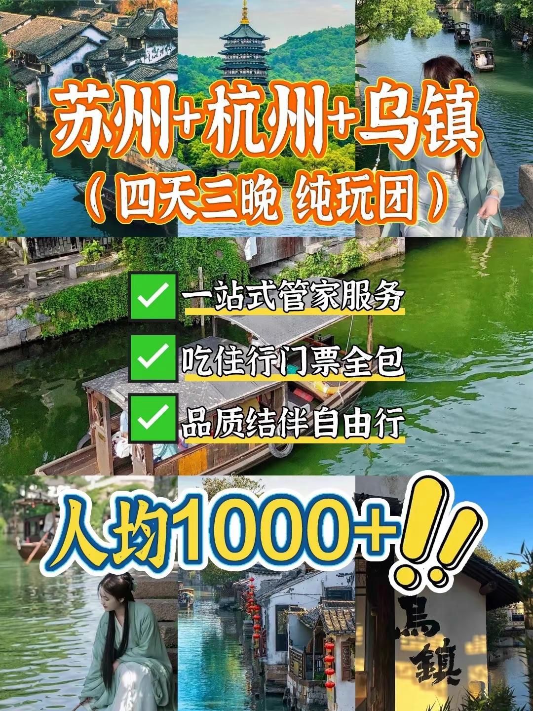 杭州当地团人均只要800就能享受优。想省钱又想睡懒觉的佛系小伙伴这篇攻略你值得拥有当地团人均只要800就能享受优选民宿、高档酒店,还有苏杭地道美食和专车接送! 告别传统跟团模式,每天都有新风景,亲测靠谱跟着我走省钱省力省时间……-苏杭行程规划:苏杭4日游时间:落地团4天3晚行程亮点:古镇古街、特色水乡、苏州园林、湖光十色、千年古寺、雷锋塔、美食打卡-江南意境杭州:西湖美景尽收眼底,听西湖故事乌镇:乘坐摇橹船,汉服旅拍,赏古镇风光南浔:不一样的江南历史风光等你来打卡!-[苏州+杭州+乌镇4日游路线]DAY1:抵达杭州丨专车接站 | 入住酒店 | 前往乌镇 DAY2:乌镇丨南浔丨西塘DAY3:船游西湖丨雷峰塔丨漫步苏堤丨三潭印月DAY4:狮子林丨寒山寺丨七里山塘丨专车送站上面这条4天3夜的路线,就是跟团走的舒适版行程景点啦!好玩又不累~-当地团福利来咯帮带孩子、帮拎行李拍照,给你舒适旅游体验24小时专车接送,享受4天3晚高品质游玩入住有水乡特色酒店,孩子喜欢,家长惬意保姆式一条龙服务,从路线安排到拎包拍照都有专人全程对接,不让家长为琐事烦扰-美食分享:[图片]西湖醋鱼:酸甜可口,这可是杭州的传统名菜呢吃一口就忘不了[图片]东坡肉:肥而不腻,入口即化[图片]南浔烧饼:外酥里嫩,香气扑鼻[图片]千岛湖鱼头:肉质鲜美,是来千岛湖必吃-Tips:如果去苏杭旅游怕被坑的话,可以跟个当地靠谱的团玩哦‼住宿、交通这些都不用自己操心,真超省心而且包括了吃、住、行、门票全含,还有免费接送站服务,简直不要太贴心! #杭州旅游 #杭州旅游攻略 #苏州旅游 #苏杭旅游攻略 #乌镇