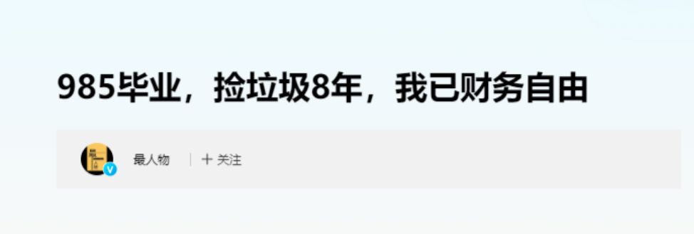 参考资料:985毕业,捡垃圾8年,我已财务自由—澎湃新闻·澎湃号·湃客