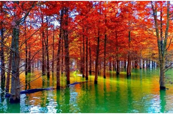 落羽杉湿地公园以其独特的湿地生态景观吸引了众多游客,这里的落羽杉林是冬季的一大亮点。
