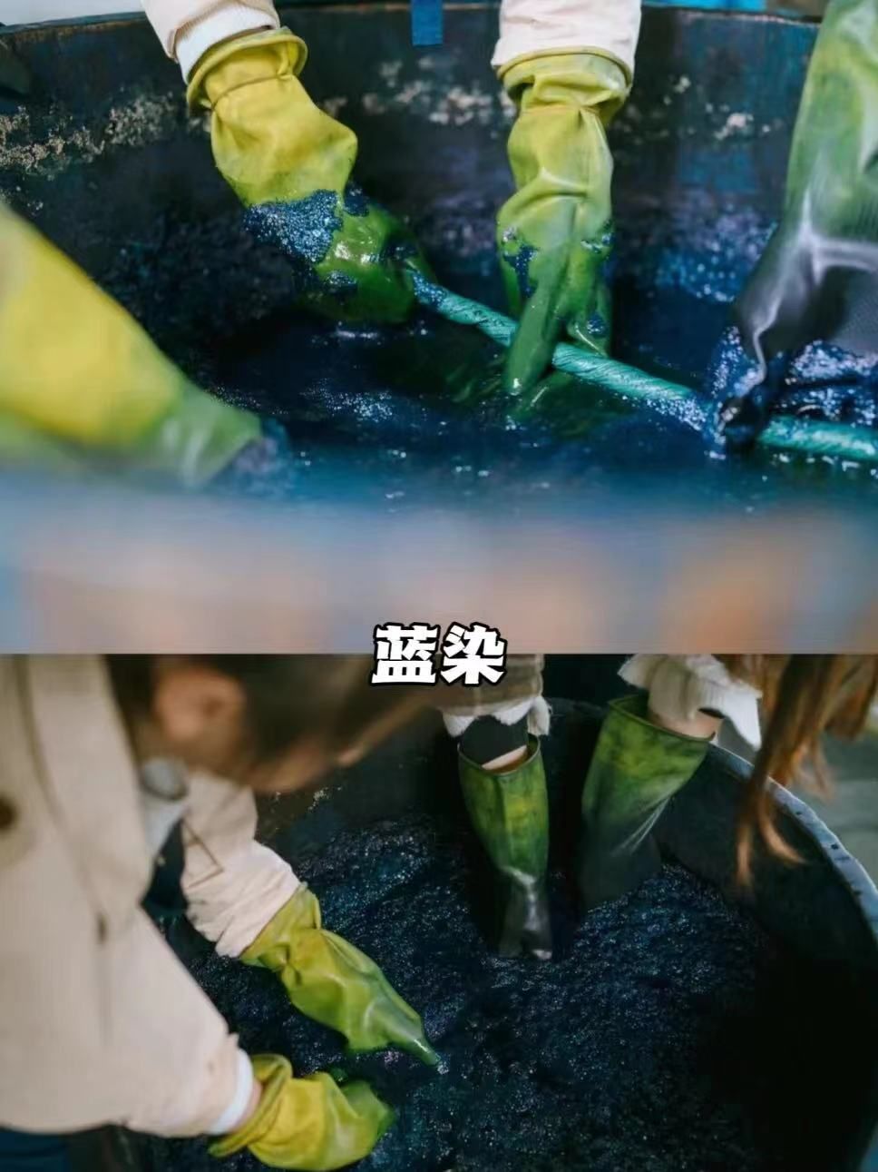 在这里可以进行草木染的创作,其中蓝染最具特色,可以挑选自己喜欢的布料,看布匹上色,制作属于自己独一无二的花纹