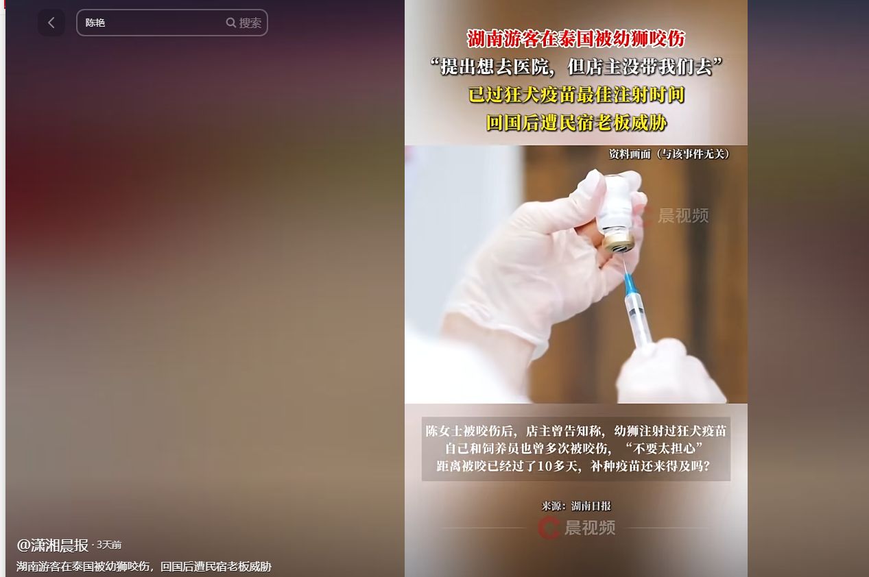 信息源:《湖南游客在泰国被幼狮咬伤,回国后遭民宿老板威胁》潇湘晨报#MCN微头条伙伴计划#