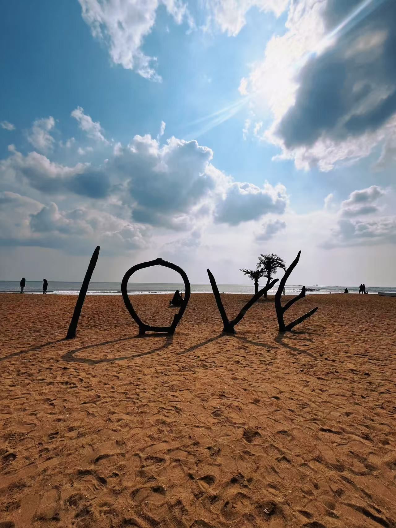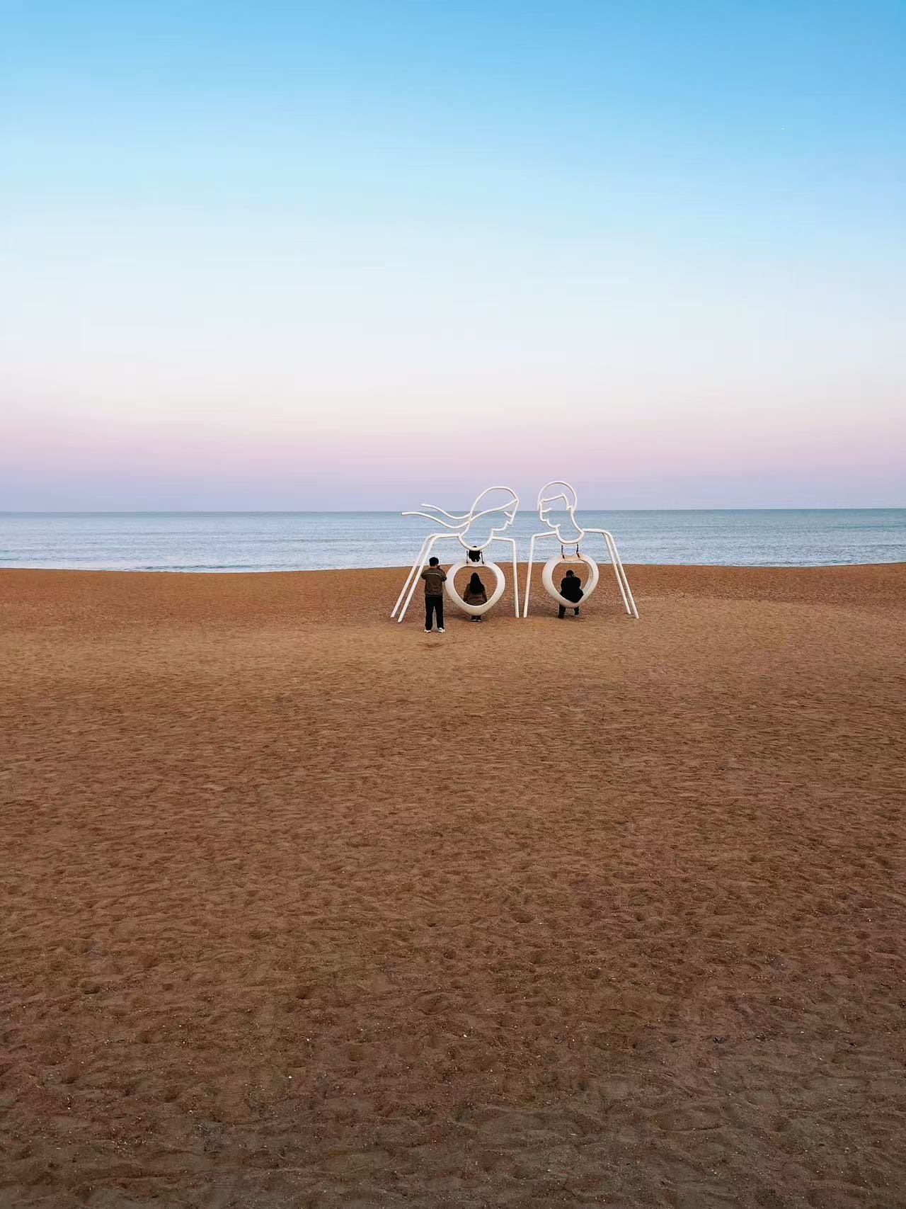 在海龙湾,最近也是在新改造,日照最长的一个栈桥,可以在这钓鱼,期待他的新样子,旁边沙滩上都是黑色主题的打卡点,很有沙漠即视感