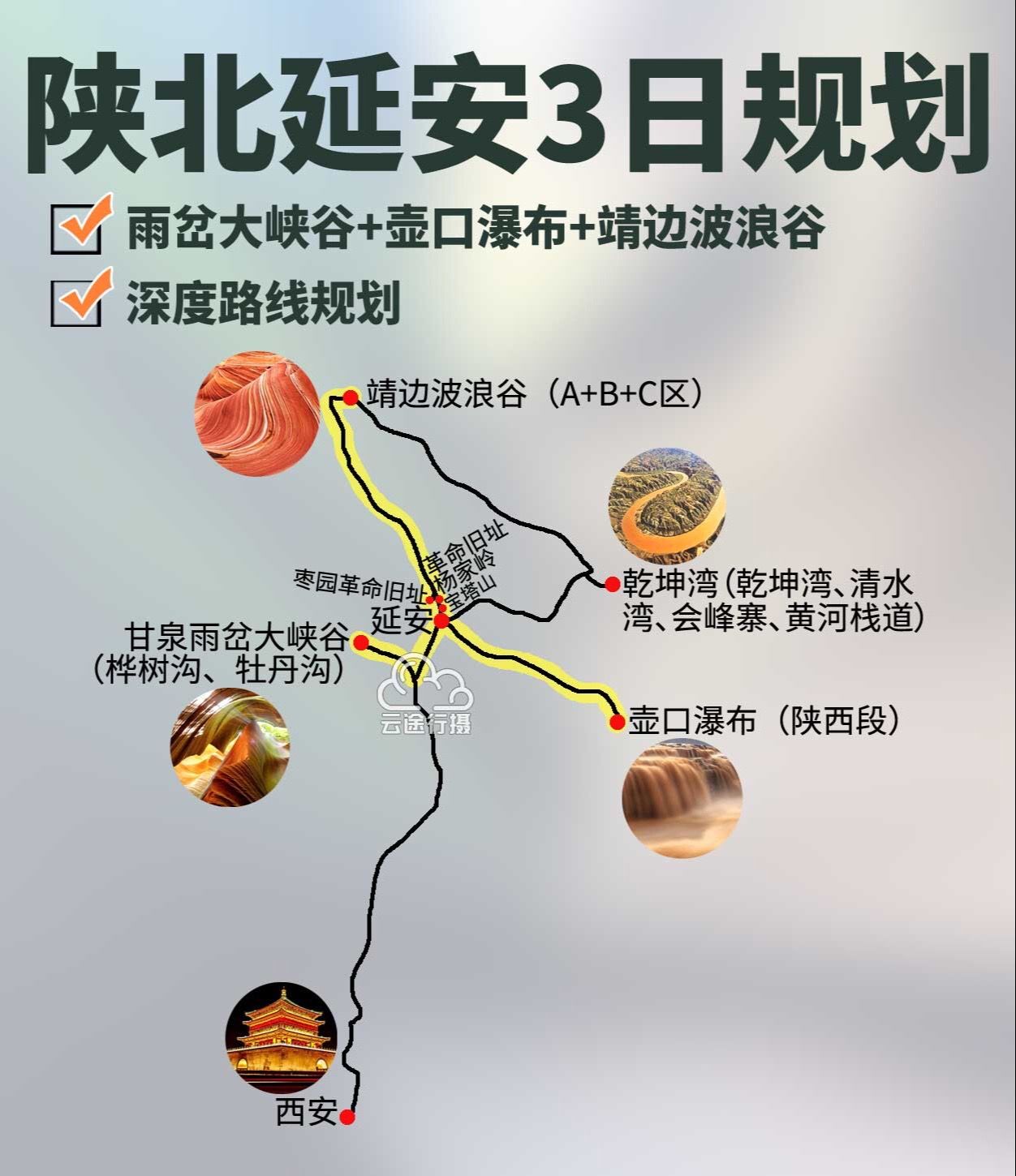 车程:延安雨岔大峡谷(1.5h)波浪谷(2h)