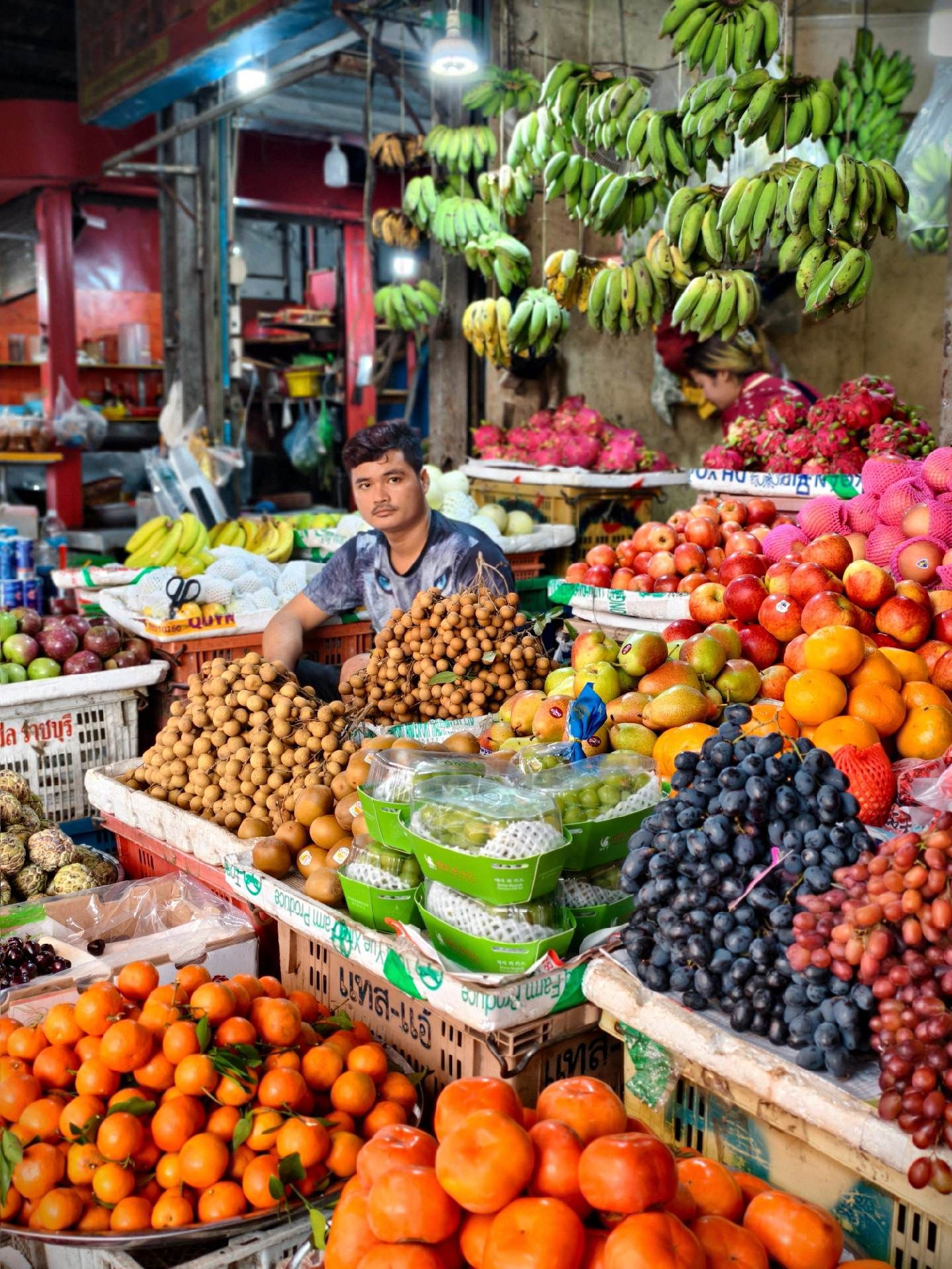 西哈努克港的上市场是最热闹的地方之一,水果摊上琳琅满目的本地水果色彩鲜艳,形状各异,让人眼前一亮。市场里不仅有卖水果的小摊,还有专为当地人理发的摊位,理发师一边修整着顾客的发型,一边与他们闲聊,增添了不少人情味和市井气息。