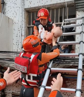 他们接力托举婴儿,抱在怀中小心翼翼!