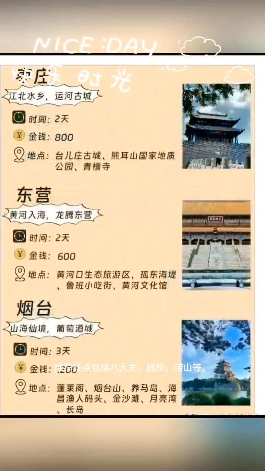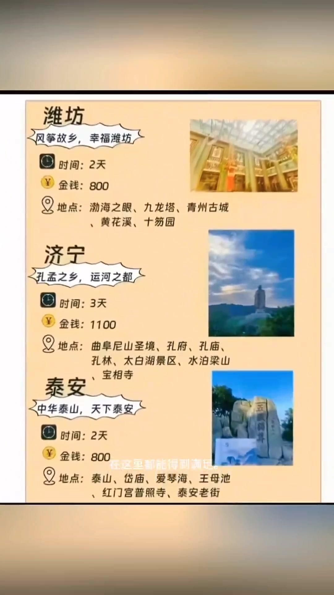 畅游山东,16个城市的旅游攻略来啦!济南,山东省的省会,有泉城之称。推荐景点包括趵突泉、大明湖、千佛山等。此外,济南的美食也非常有名,比如把子肉等。