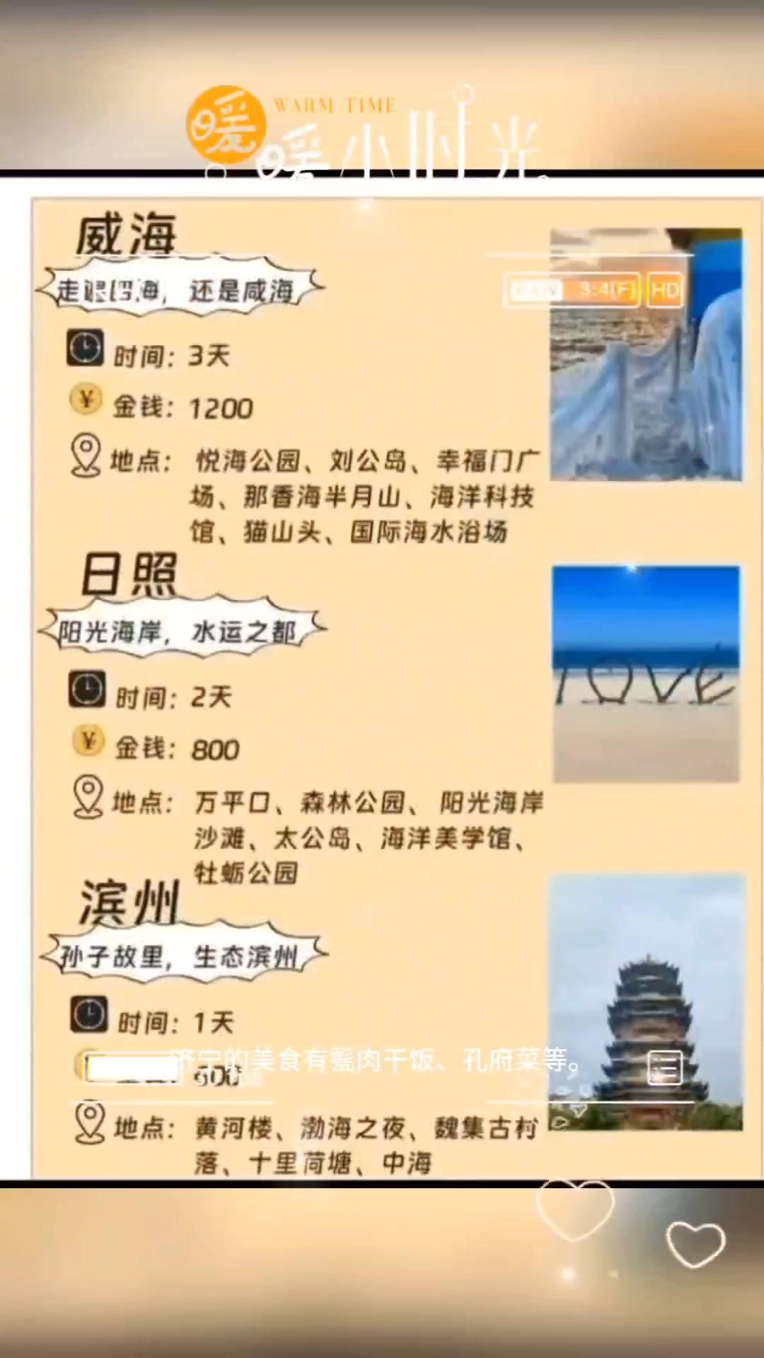 威海,是一个美丽的海滨城市,被誉为最适合人类居住的城市。推荐景点包括刘公岛、成山头、威海国际浴场等。威海的美食有海鲜、威海无花果等。
