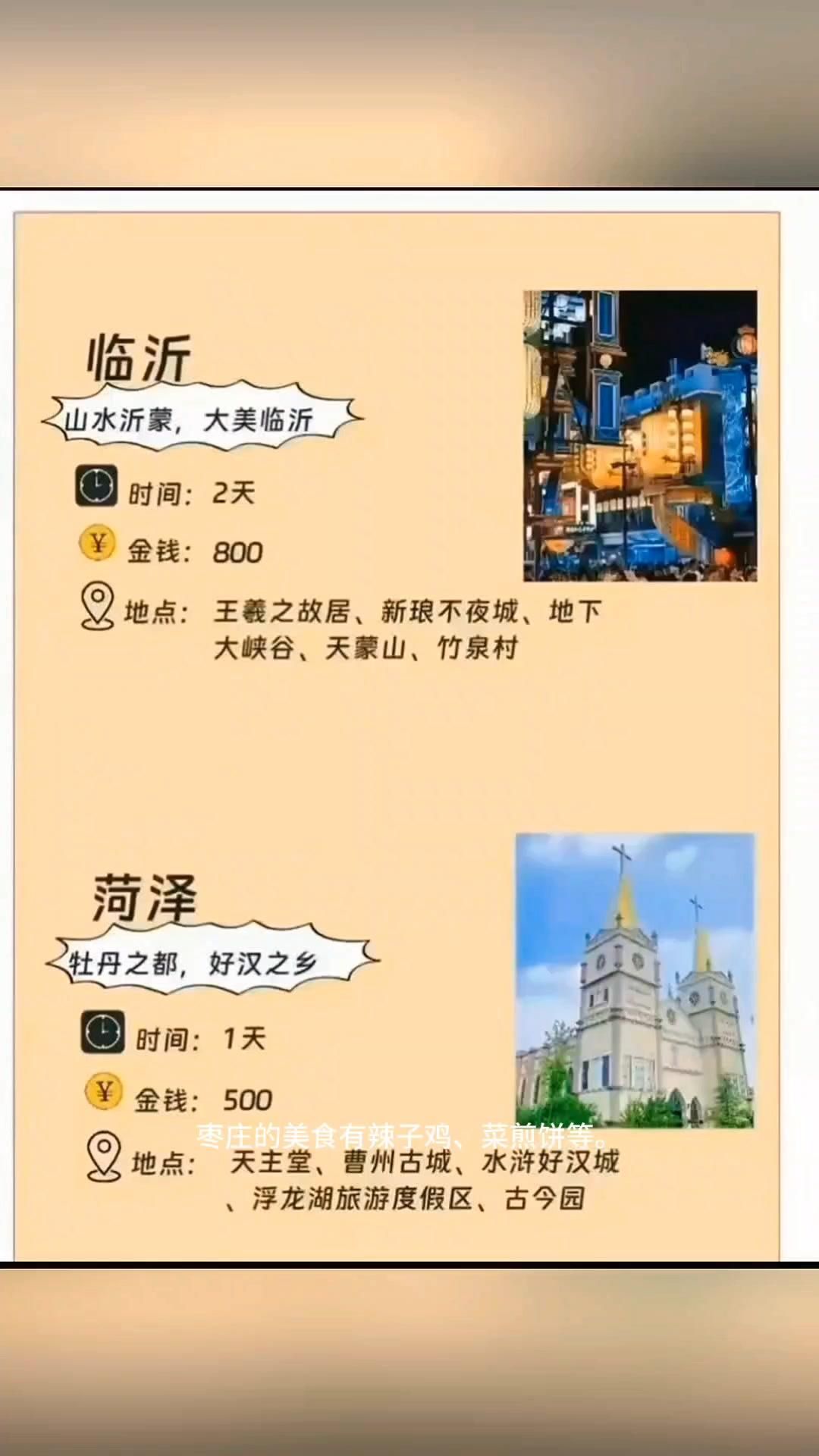 枣庄,是铁道游击队的故乡,是一个充满活力的城市。推荐景点包括台儿庄古城、微山湖湿地公园等。枣庄的美食有辣子鸡、菜煎饼等。
