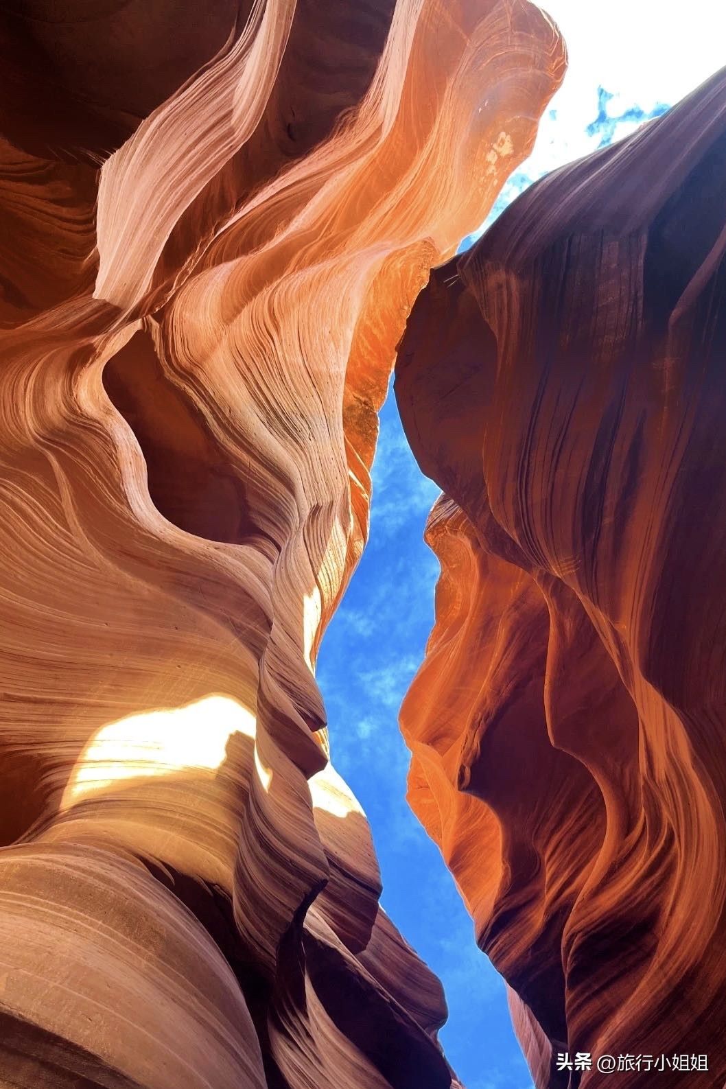 跟随纳瓦霍向导深入羚羊谷,正午阳光穿透砂岩缝隙,折射出橙红与紫蓝的幻境,随手一拍即是大片。