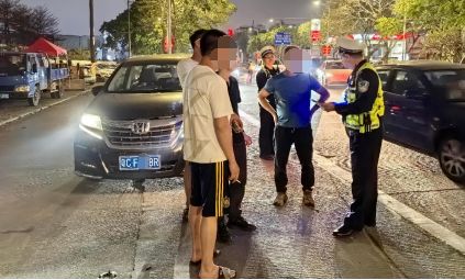 3月16日凌晨2点17分,南湾交警在南湾大道开展夜查整治时,发现粤A0××K0号面包车后排有些拥挤,立即示意司机将车窗摇下。果然,经核查,该车核载7人,实载9人。