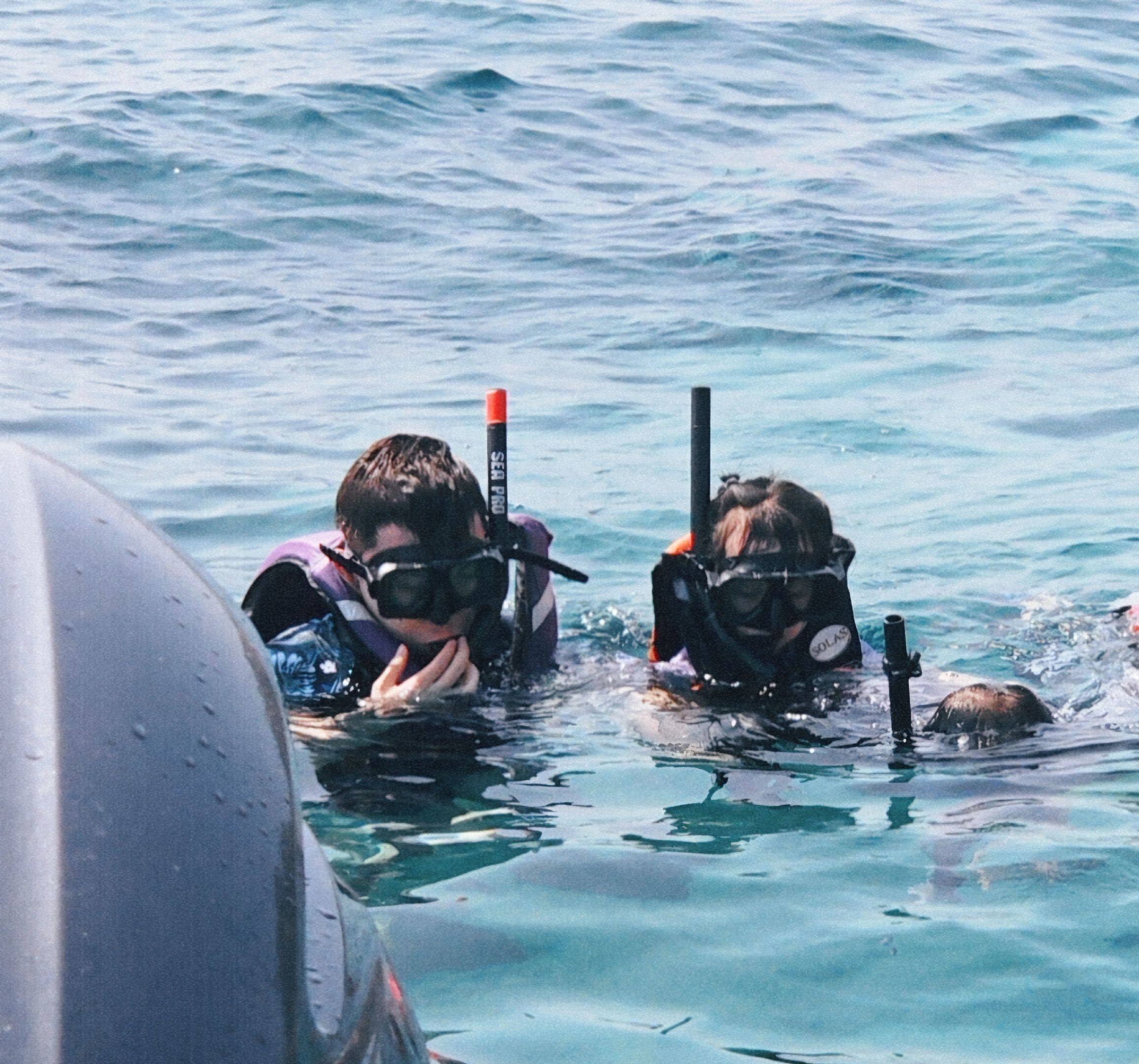 度假村免费提供儿童浮潜装备! 码头附近就有超多珊瑚礁,带娃下水就能看到小丑鱼、蓝尾巴珊瑚鱼,水浅又平静,5岁+宝宝都能玩。建议上午去,海水像果冻一样清透~