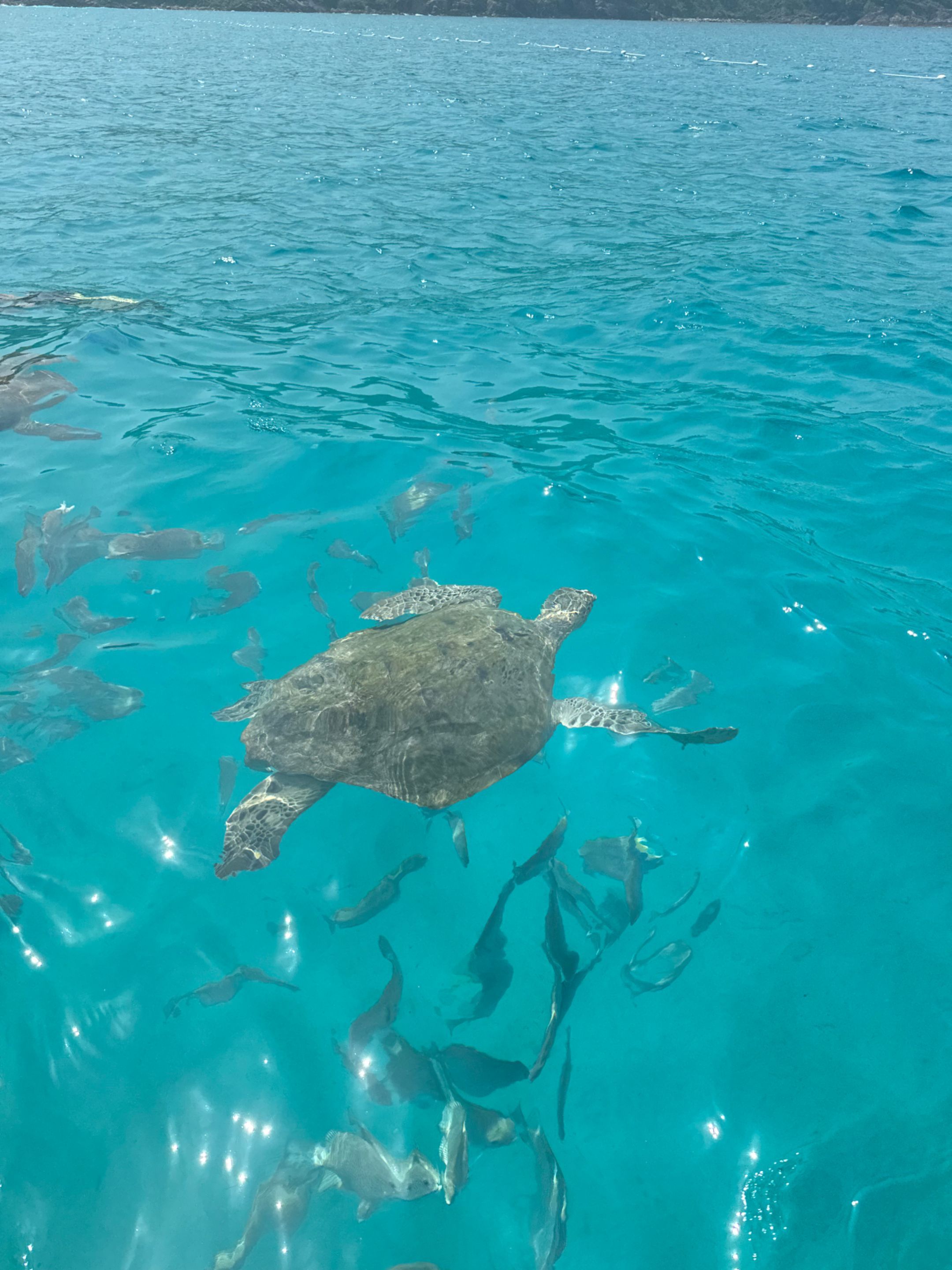 参加度假村半日游(约150马币/人),坐船到海龟湾。3-5月几乎100%遇到温柔的大海龟!黑鳍鲨宝宝只在浅水区散步,害羞不咬人,5岁女儿回来画了十张鲨鱼图