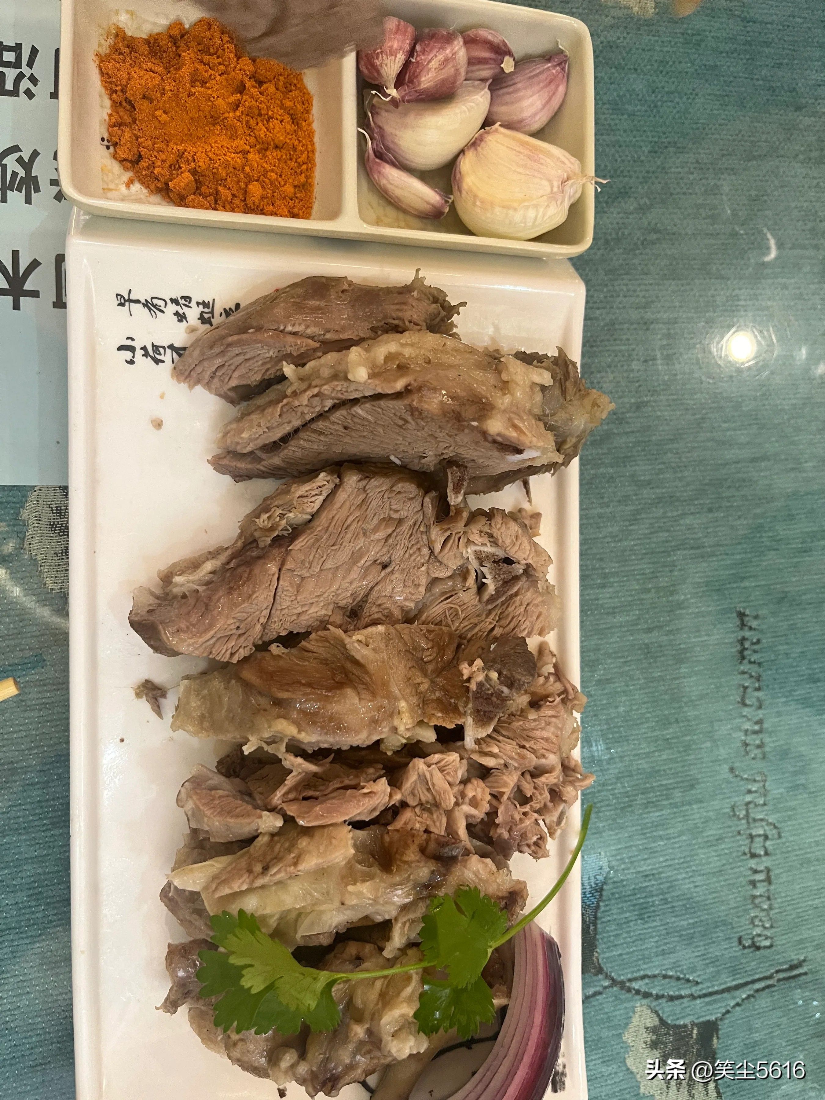 晚上我们找了一家手抓羊肉的餐厅,两人要了一斤的羊肉,本来我们想要精品,但发现精品的羊肉有点肥,我们就换了一斤普通的,瘦一点,更适合我们的口味。羊肉块很大,我们讨论了一下,觉得还是直接手抓比较方便,用筷子夹太累了。一斤羊肉,再加两个配菜,吃得饱饱的!