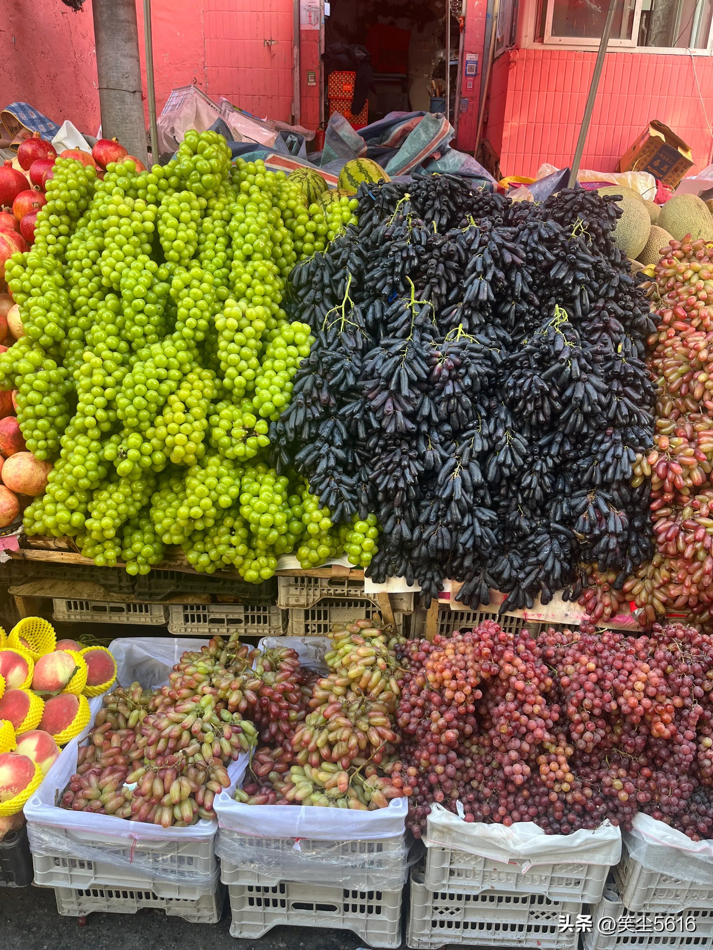 第二站我们去城东一个清真寺,更主要是去逛一下附近的一个市场,我们喜欢到一个陌生城市逛市场,看看有什么当地的美食小吃。西宁这边的水果太有特色了,大大的石榴、红红的苹果,串串的葡萄,太诱人了。我们忍不住买了一些西梅和芒果,很大,尝一尝。