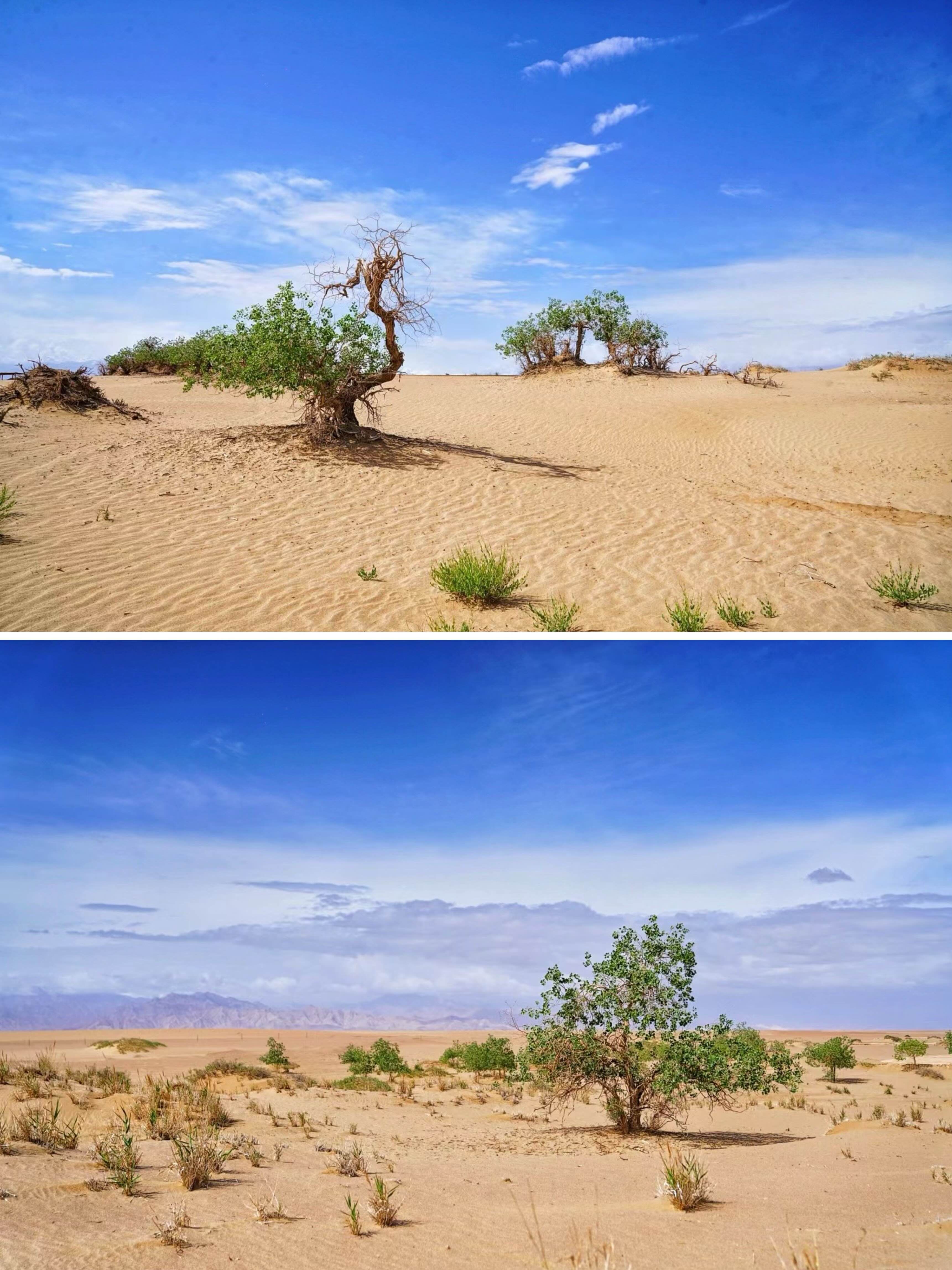 清晨从格尔木市区出发,租一辆越野车向西疾驰60公里,窗外是昆仑山的雪顶与戈壁的荒凉交织成的画卷。树干扭曲如龙,枝桠刺向苍穹,仿佛在诉说着“生而不死一千年,死而不倒一千年”的传说。