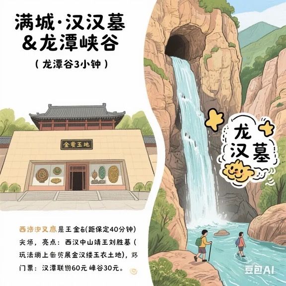 - **亮点**:西汉中山靖王刘胜墓(金缕玉衣出土地),龙潭峡谷有瀑布、溶洞,适合轻徒步。